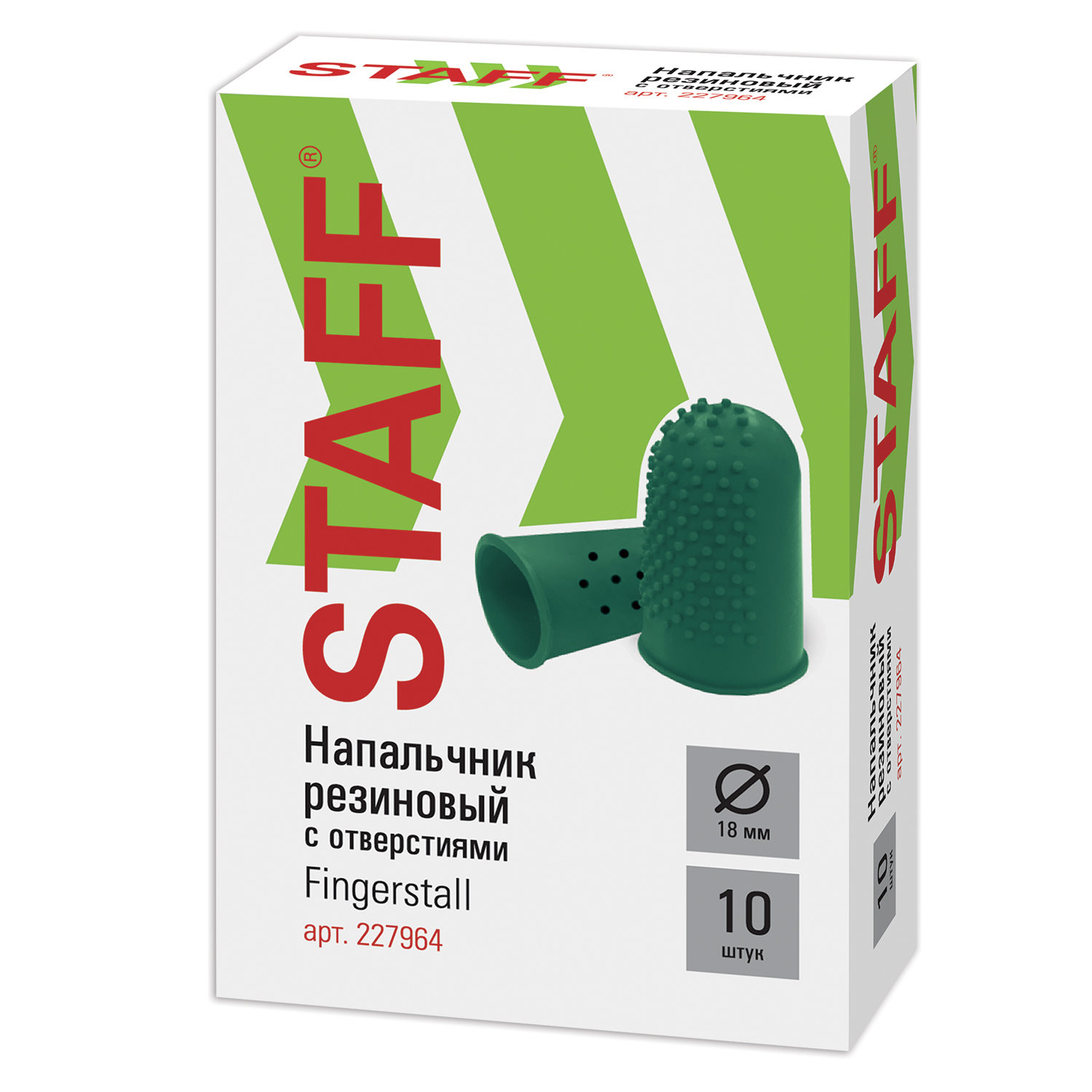 - Напальчники резиновые с отверстиями, КОМПЛЕКТ 10 шт., диаметр 18 мм, зеленые, STAFF "EVERYDAY", 227964