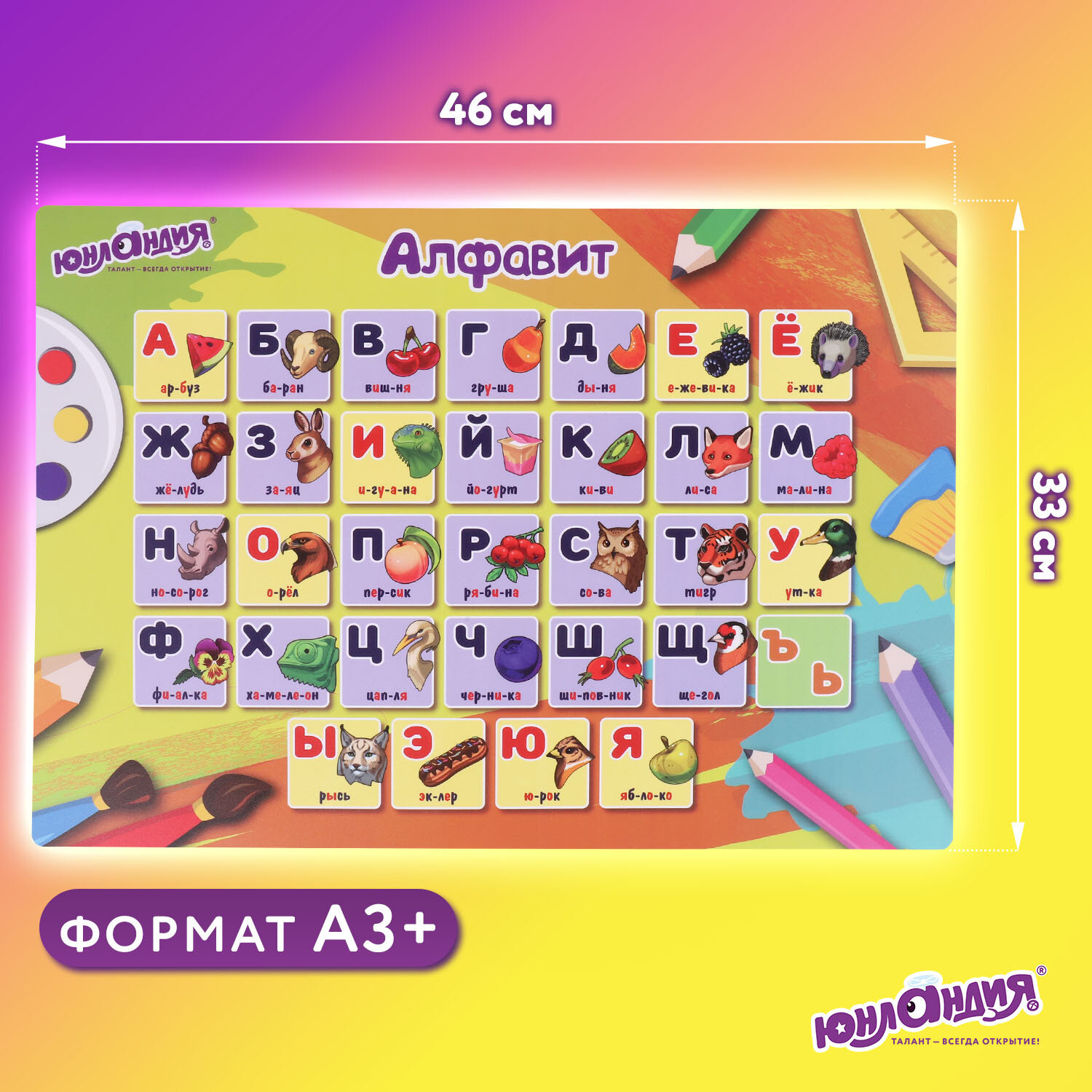 Настольное покрытие ЮНЛАНДИЯ, А3+, пластик, 46x33 см, "Алфавит", 272369