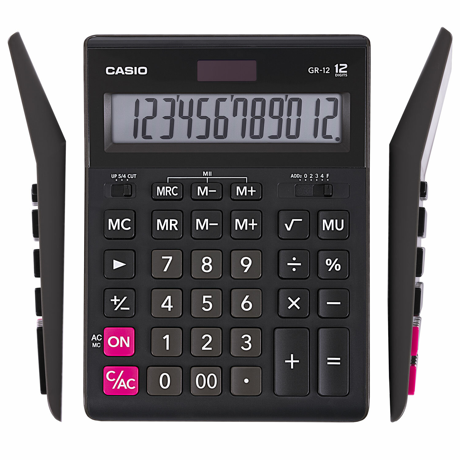 - Калькулятор настольный CASIO GR-12-W (209х155 мм), 12 разрядов, двойное питание, черный, европодвес, GR-12-W-EP