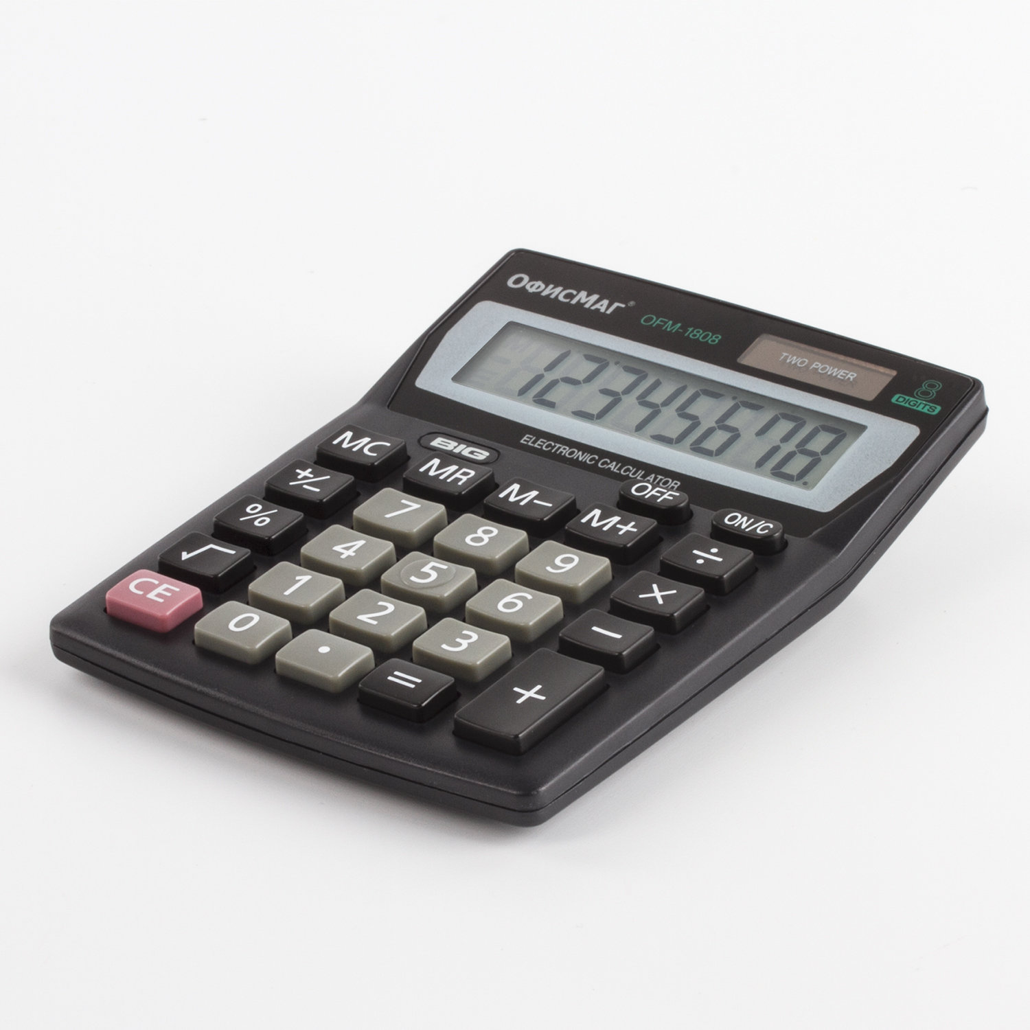 - Калькулятор настольный ОФИСМАГ OFM-1807, КОМПАКТНЫЙ (140х105 мм), 8 разрядов, двойное питание, 250223