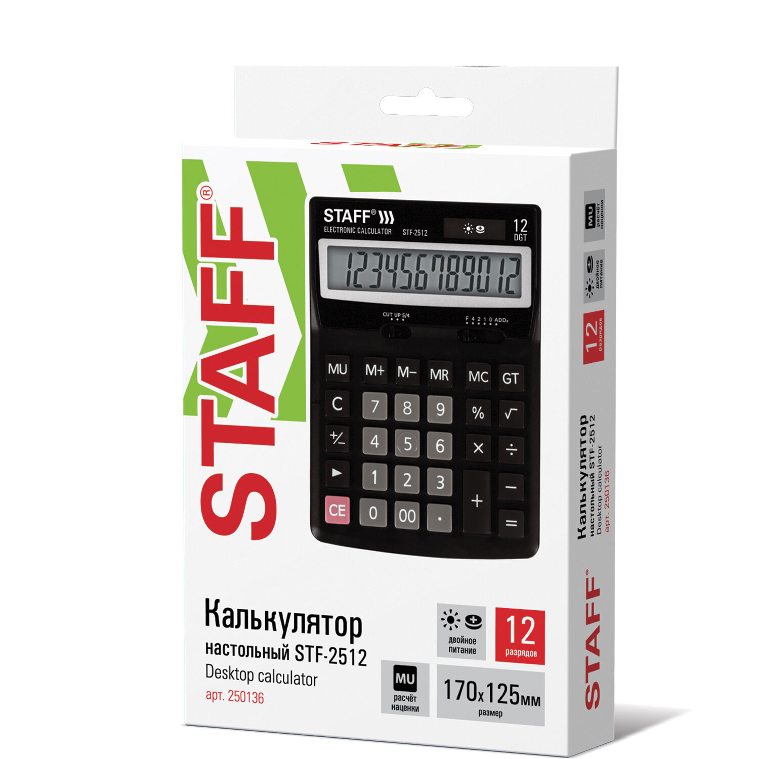 - Калькулятор настольный STAFF STF-2512 (170х125 мм), 12 разрядов, двойное питание, 250136