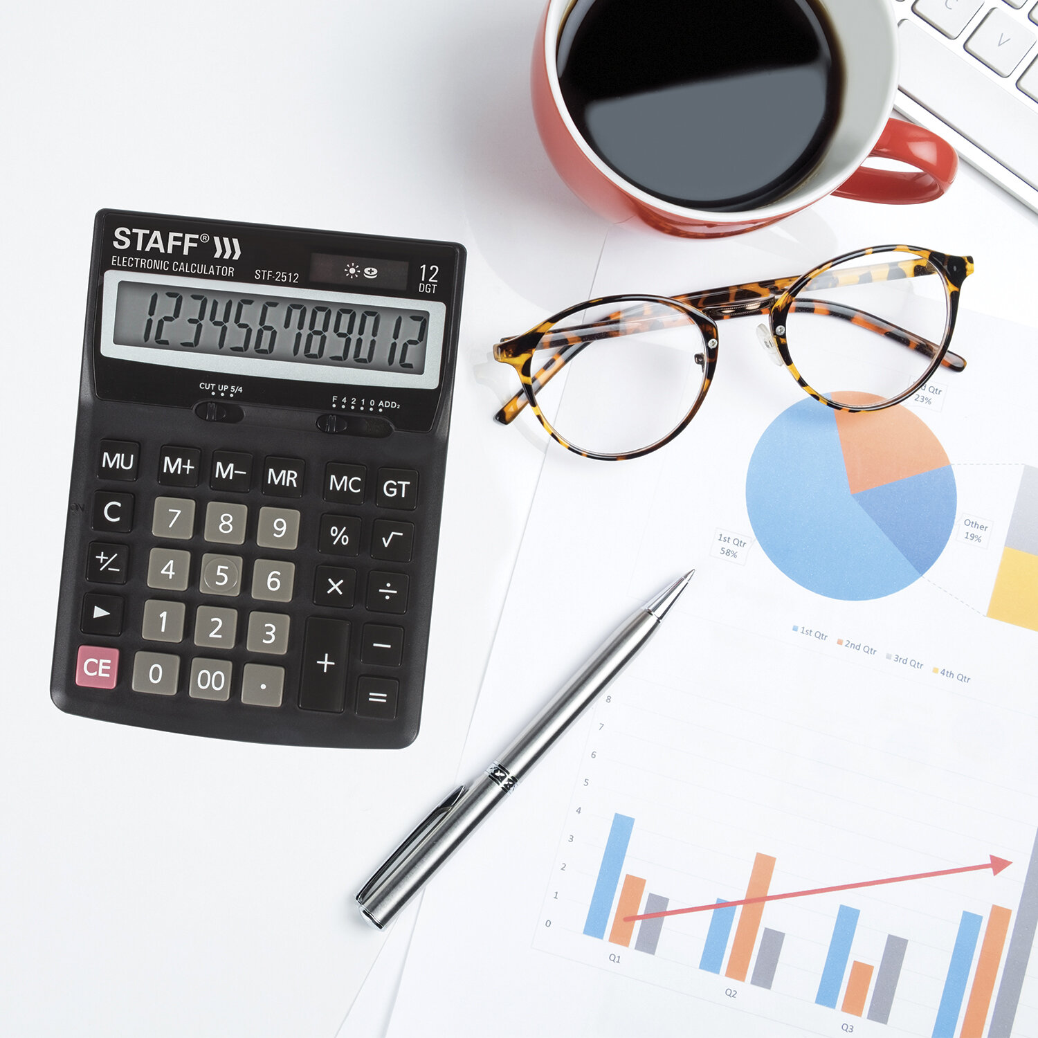 Калькулятор настольный STAFF STF-2512 (170х125 мм), 12 разрядов, двойное питание, 250136