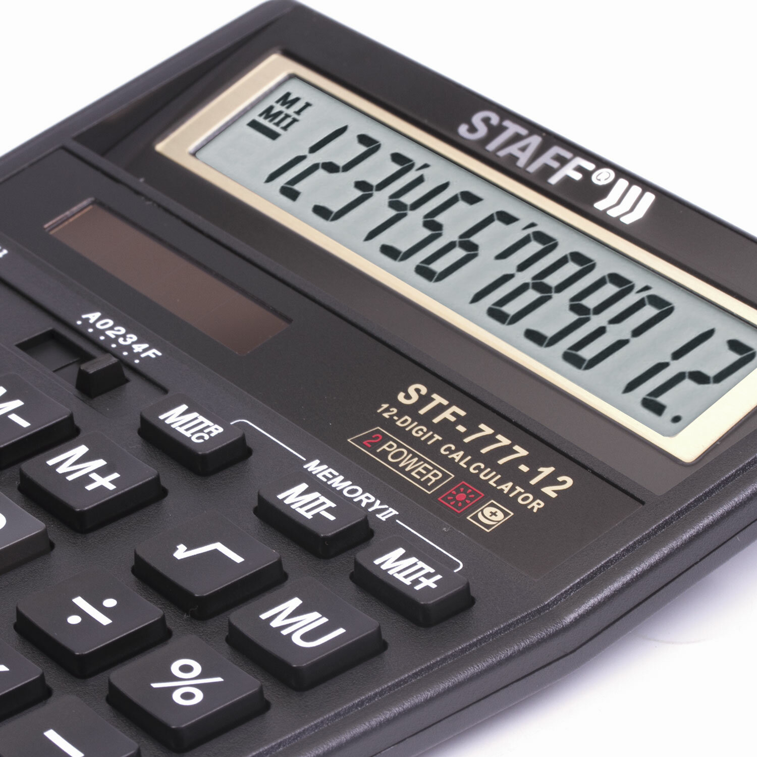 - Калькулятор настольный STAFF STF-777, 12 разрядов, двойное питание, 210x165 мм, ЧЕРНЫЙ, 250458