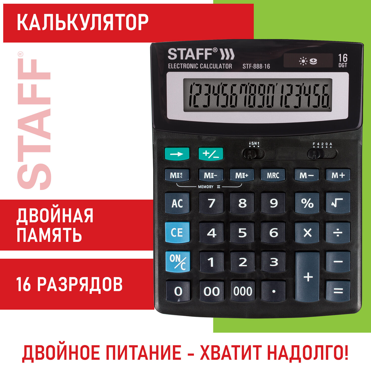 - Калькулятор настольный STAFF STF-888-16 (200х150 мм), 16 разрядов, двойное питание, 250183