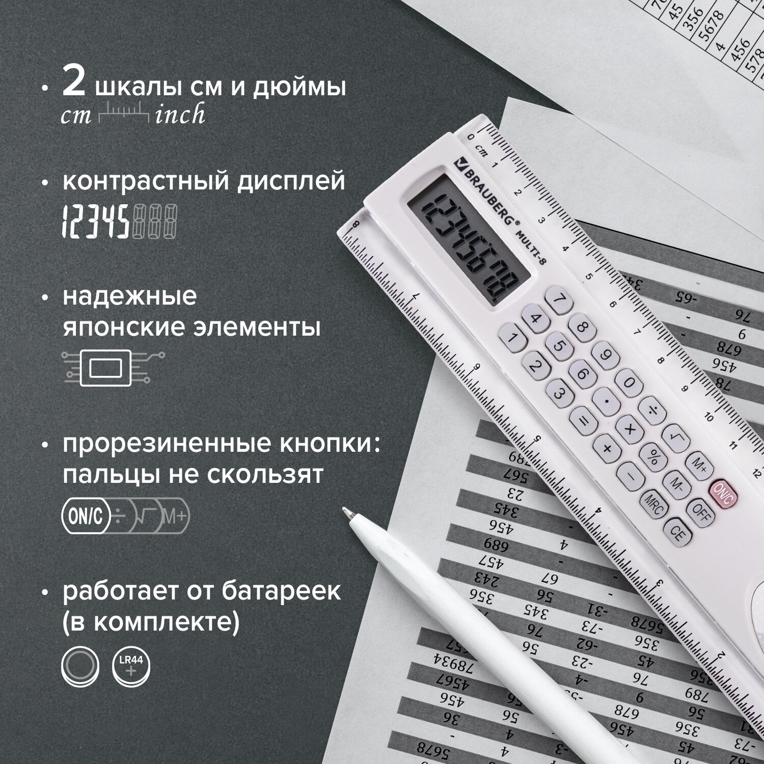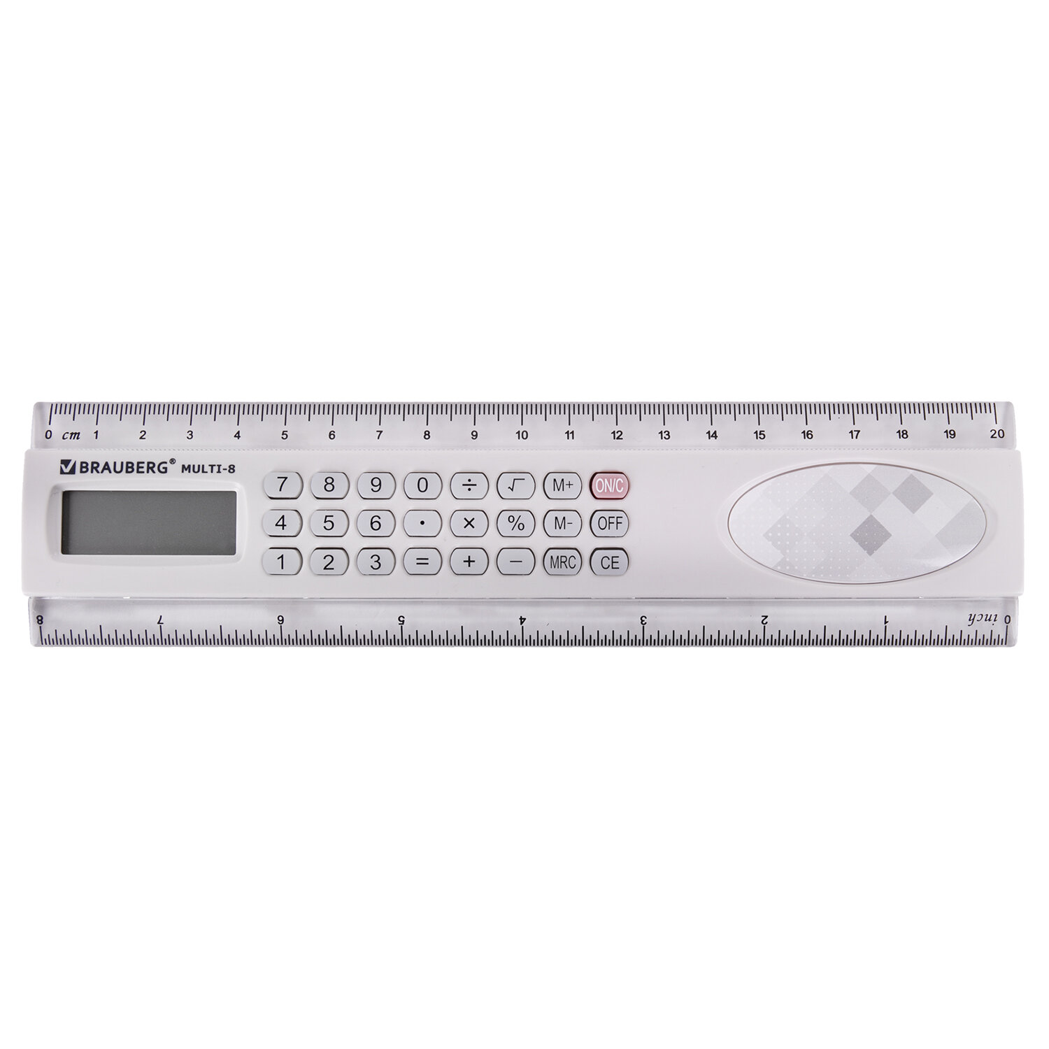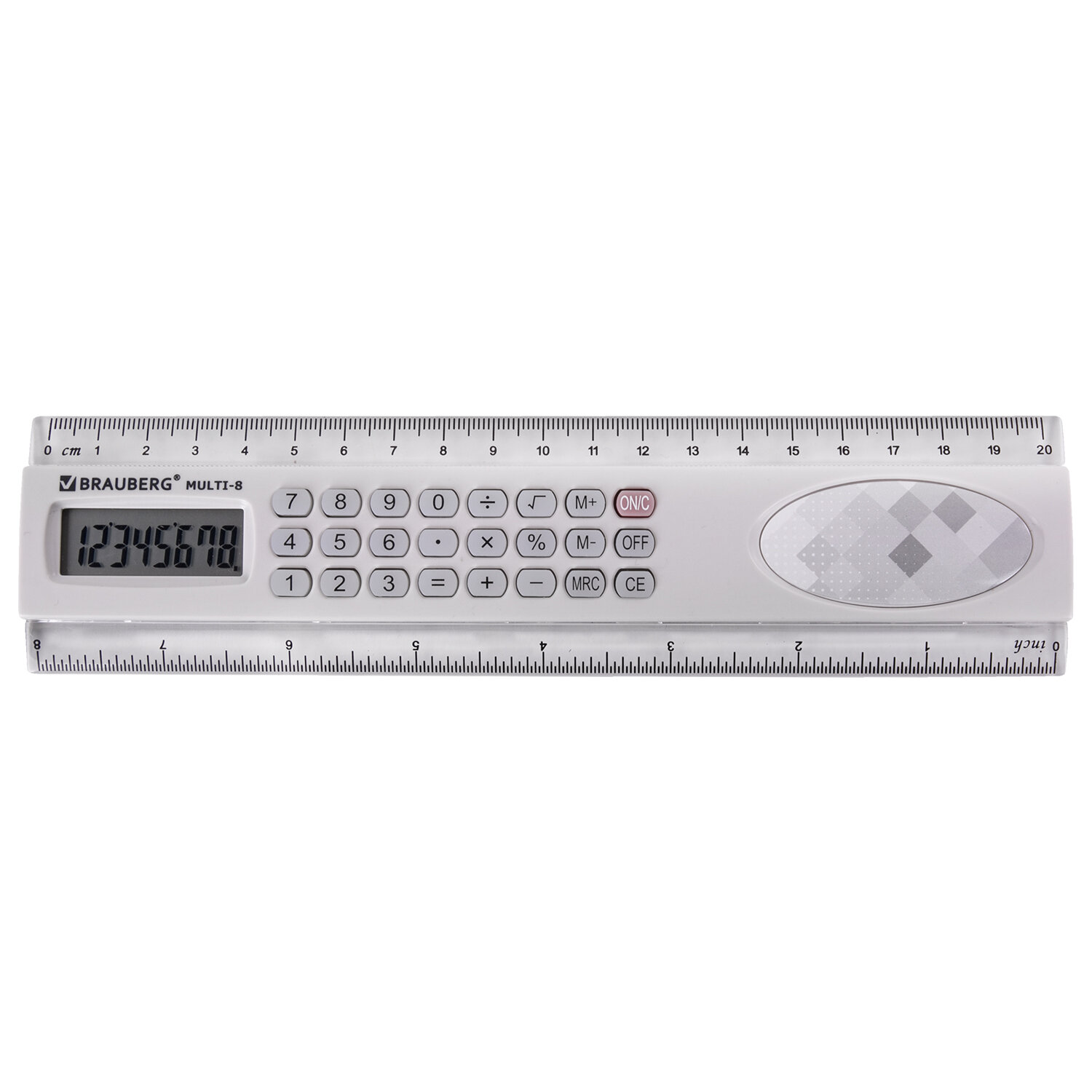 - Калькулятор с линейкой 20 см, BRAUBERG MULTI-8 (53x210 мм), 8 разрядов, 250540