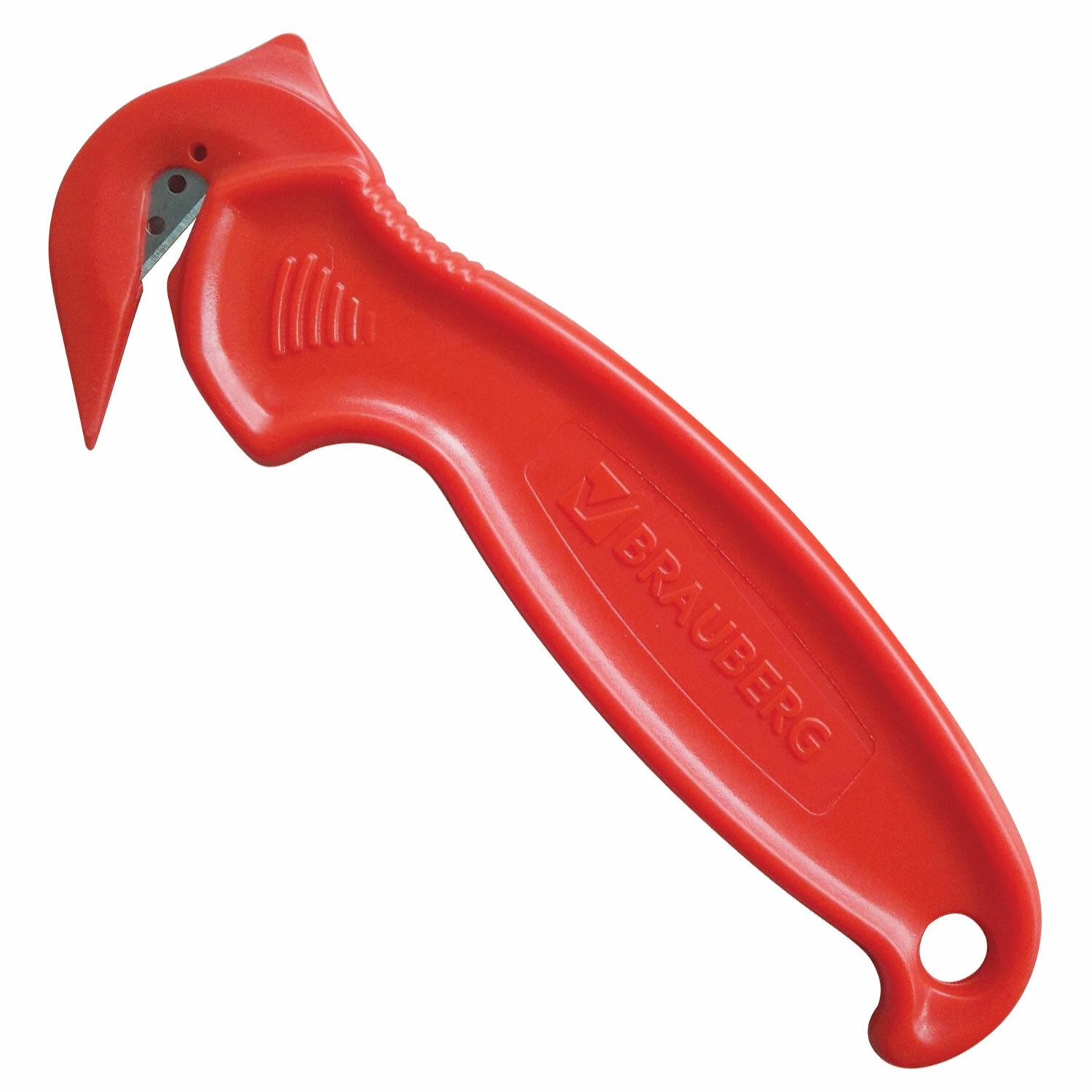 - Нож складской безопасный BRAUBERG "Logistic", для вскрытия упаковочных материалов, красный, блистер, 236969