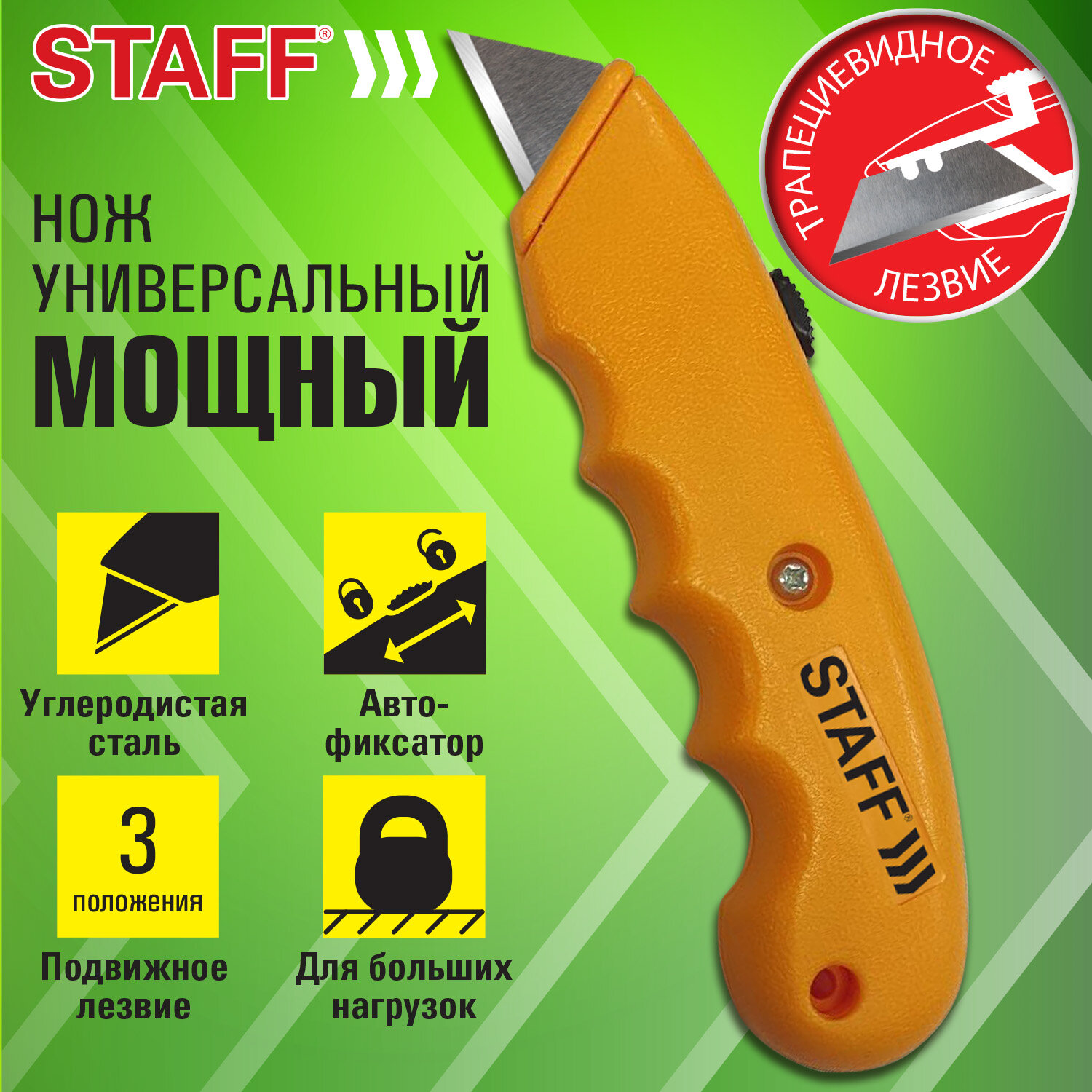 - Нож универсальный мощный STAFF PRO, автофиксатор с 3 положениями, ABS-пластик, 238733