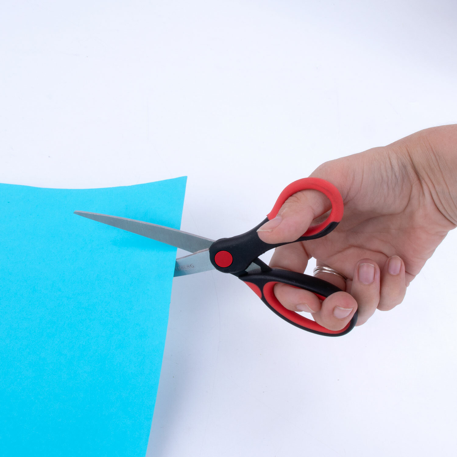 - Ножницы BRAUBERG "Office", 160 мм, красно-черные, прорезиненные ручки, 2-х сторонняя заточка, 231564