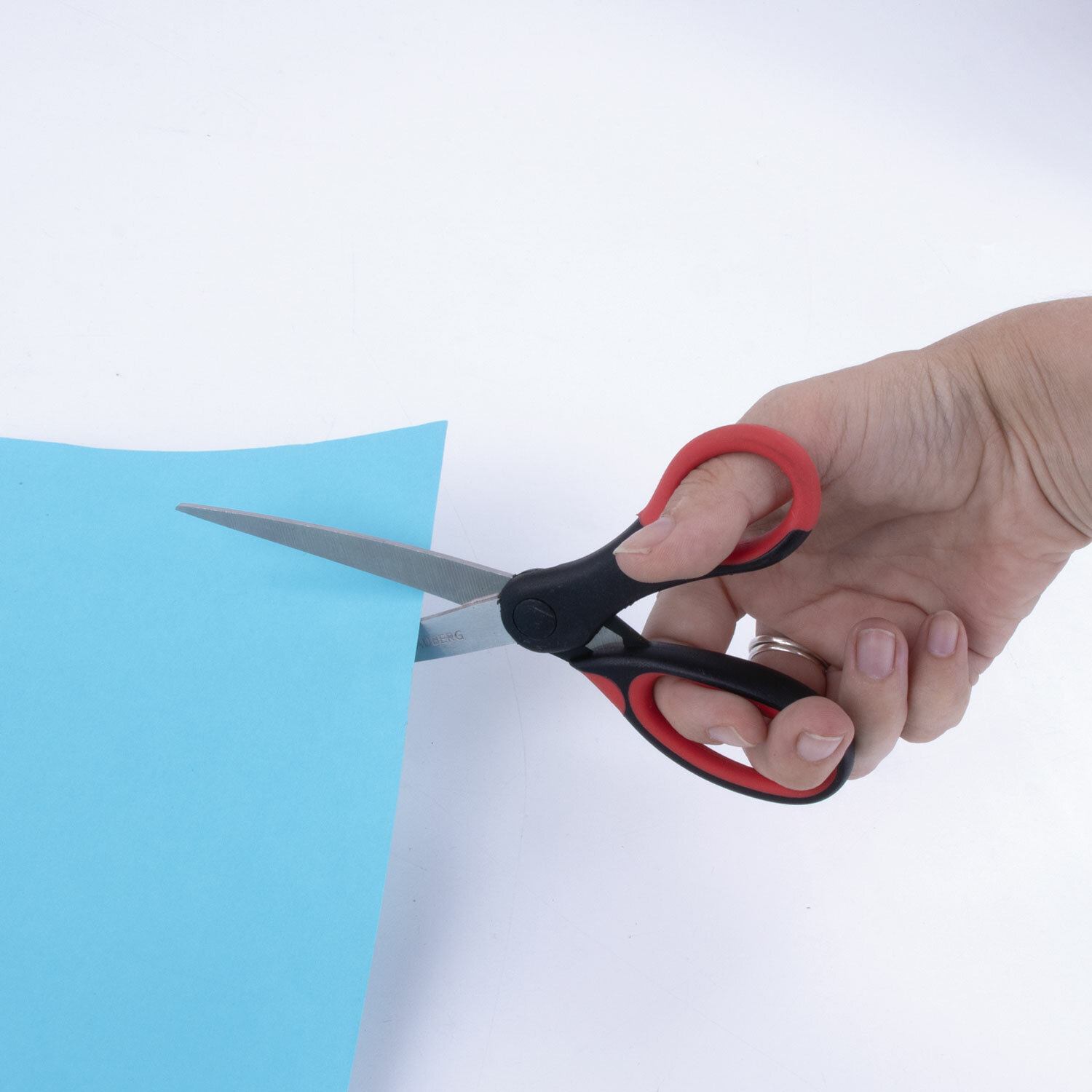 Это надежный инструмент, отличающийся хорошей двухсторонней заточкой лезвий и оригинальным дизайном в красно-черном исполнении. Размер 210 мм. За счет наличия прорезиненных ручек снижается давление на кисть руки, поэтому даже долгая работа с ножницами становится легкой и непринужденной. Поставляется в блистере.