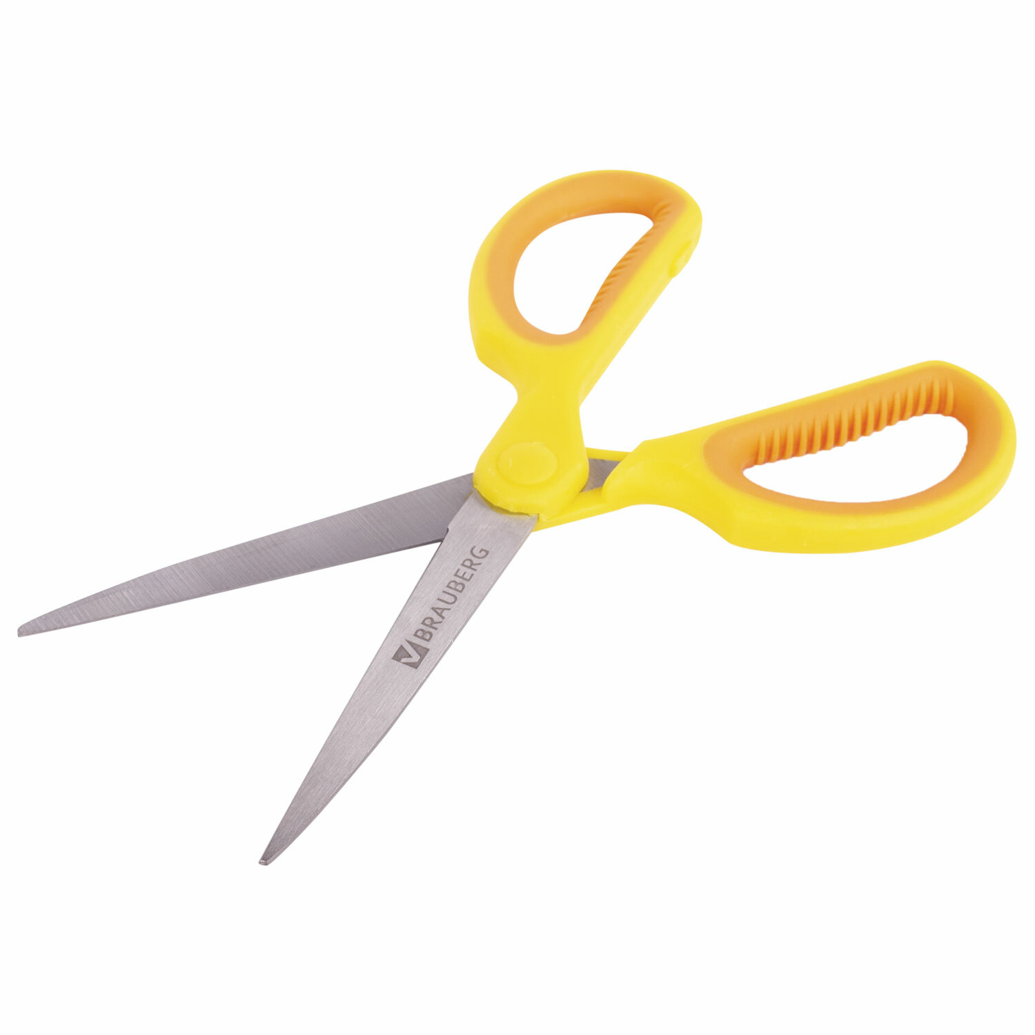 - Ножницы BRAUBERG "Original", 155 мм, оранжево-желтые, ребристые резиновые вставки, 236450