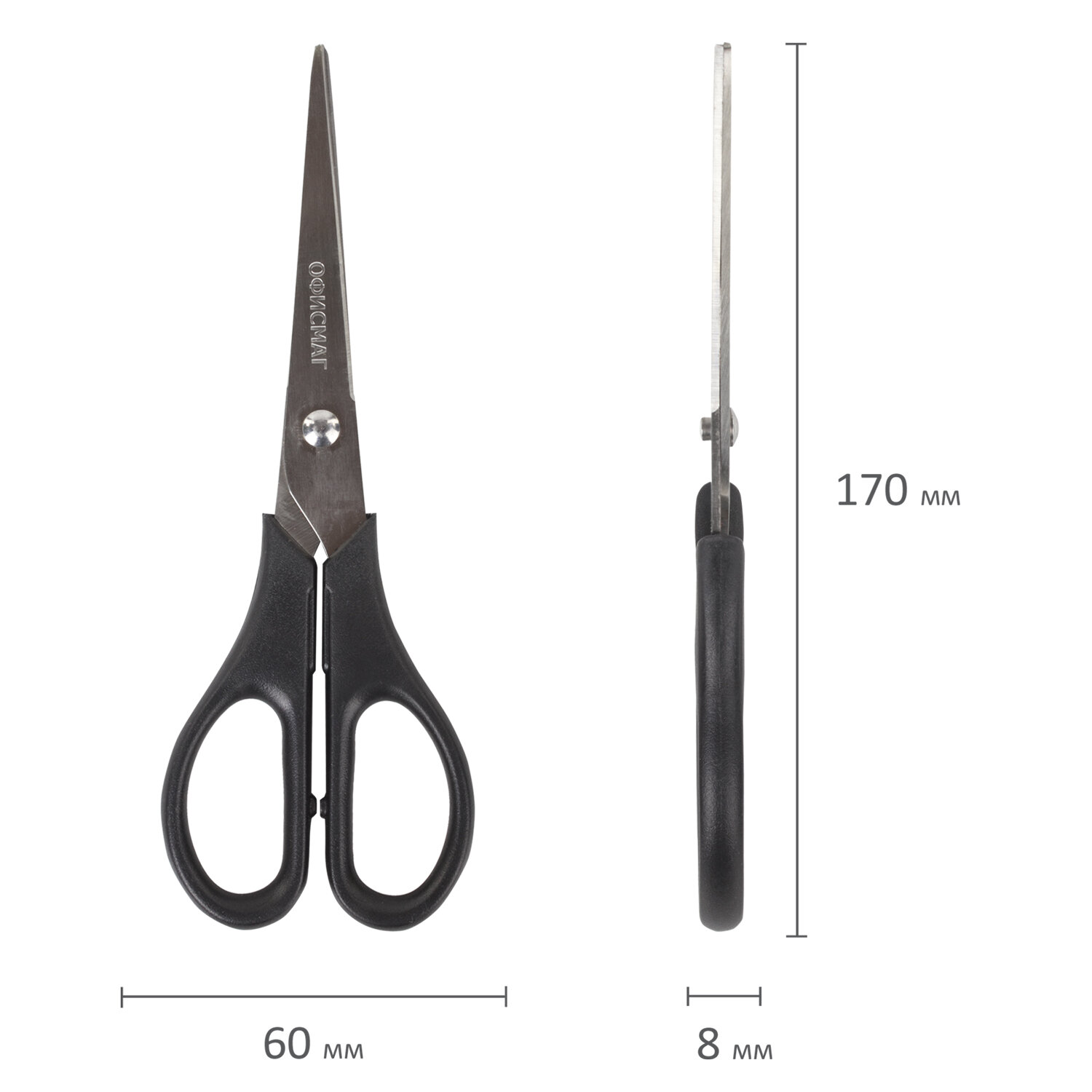 - Ножницы ОФИСМАГ "Standard" 170 мм, классической формы, черные, 237099