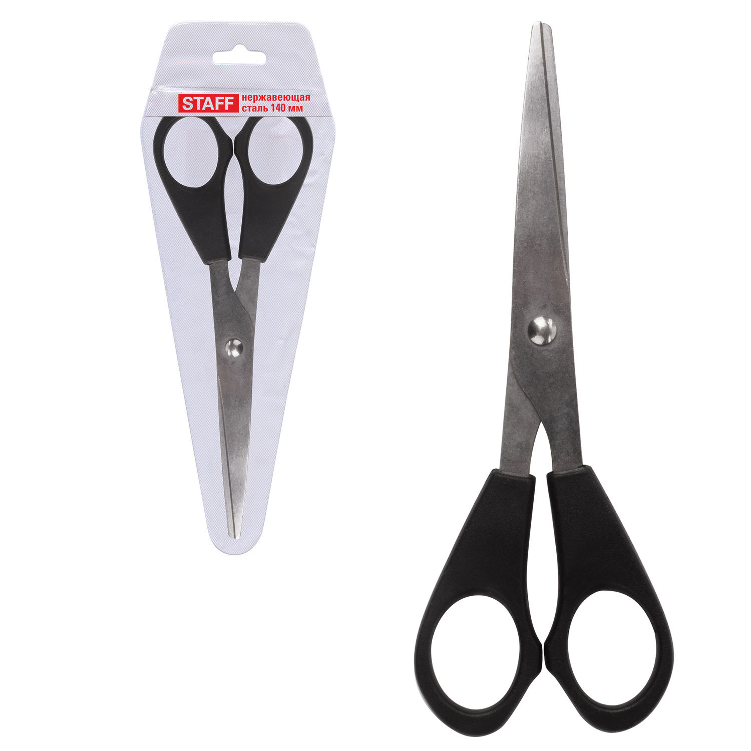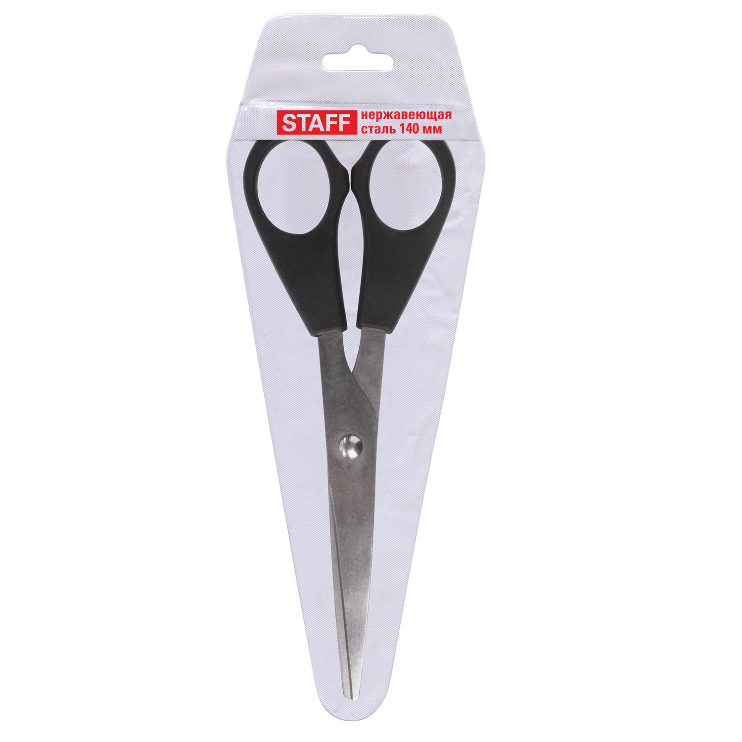 - Ножницы STAFF Basic 140 мм, чёрные, ПВХ чехол с европодвесом, 235458