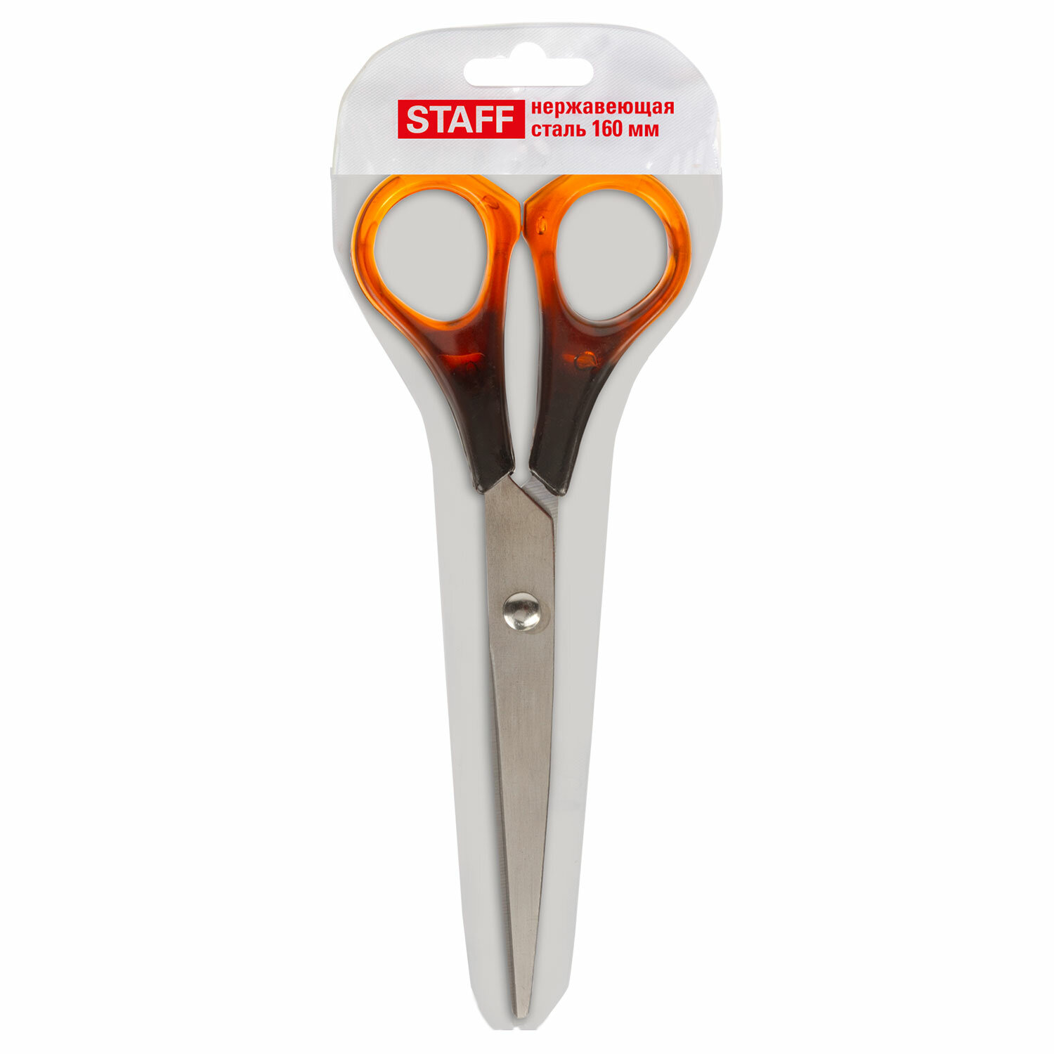 Это товар эконом-сегмента, поэтому он отличается привлекательной ценой. Товар обладает базовым набором характеристик и простой упаковкой, при этом полностью соответствует основным требованиям потребителей. Ножницы STAFF Basic 160 мм, ручки под янтарь, ПВХ чехол с европодвесом, 236937