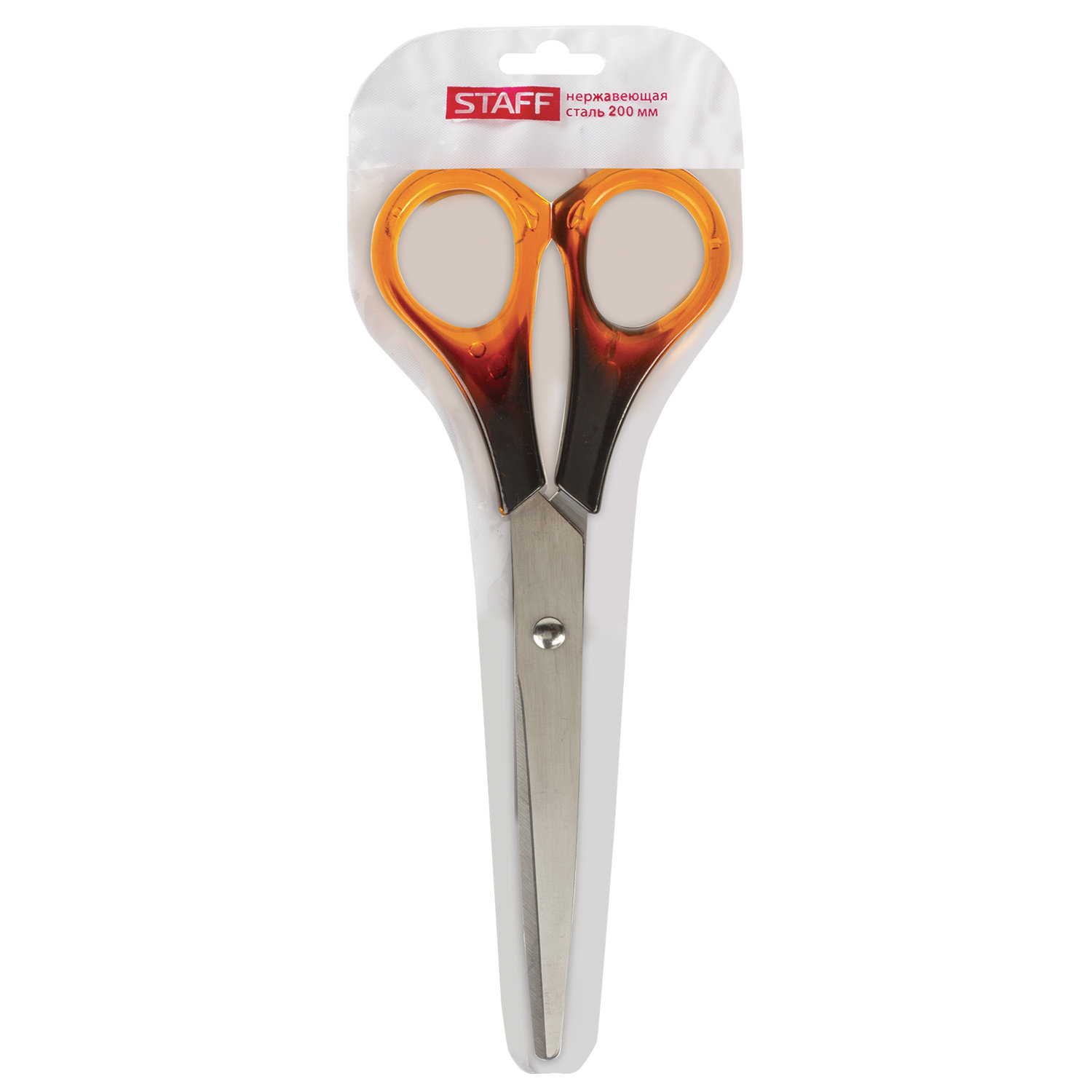 Ножницы STAFF Basic 200 мм, ручки под янтарь, ПВХ чехол с европодвесом, 236938