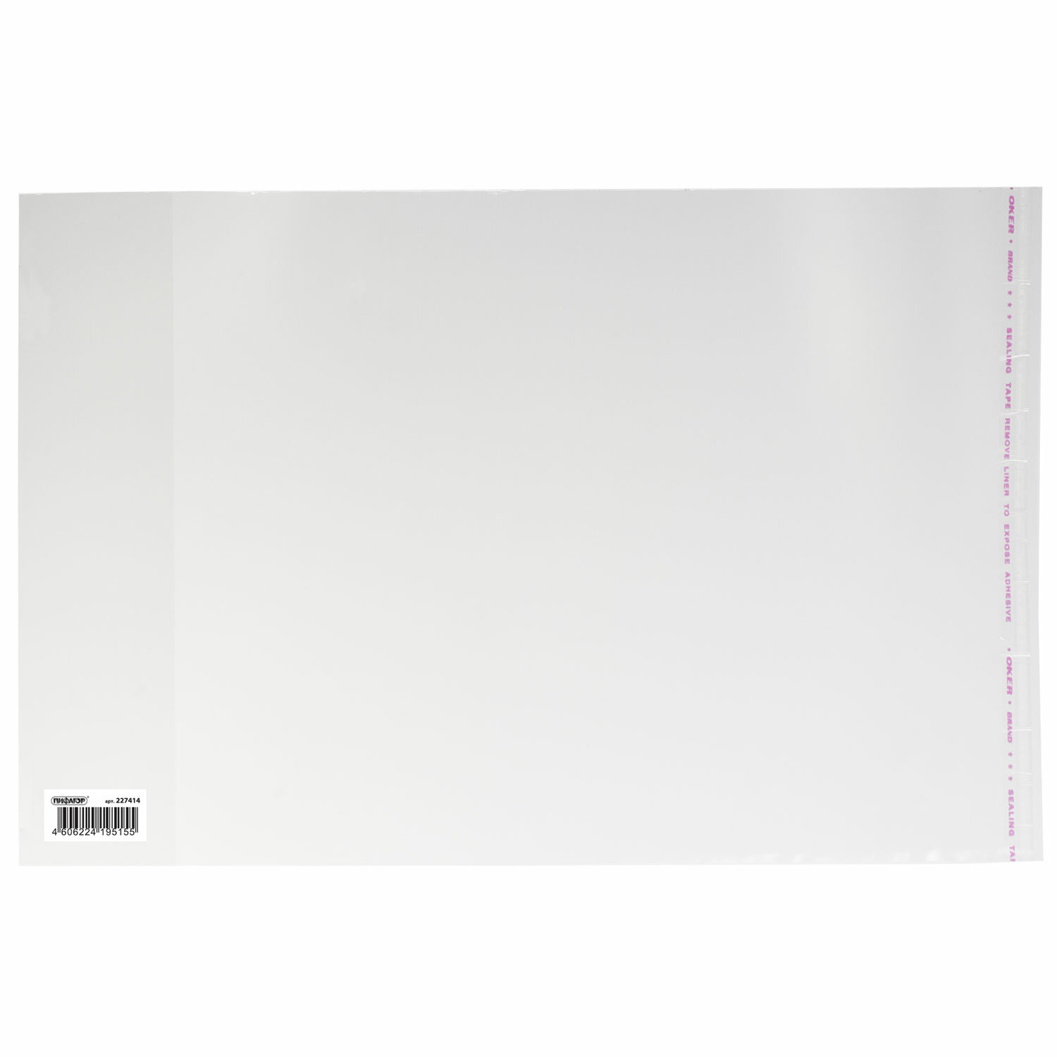 - Обложка ПП со штрихкодом для учебников МАЛОГО ФОРМАТА, КЛЕЙКИЙ КРАЙ, 70 мкм, 250х380 мм, универсальная, прозрачная, ПИФАГОР, 227414