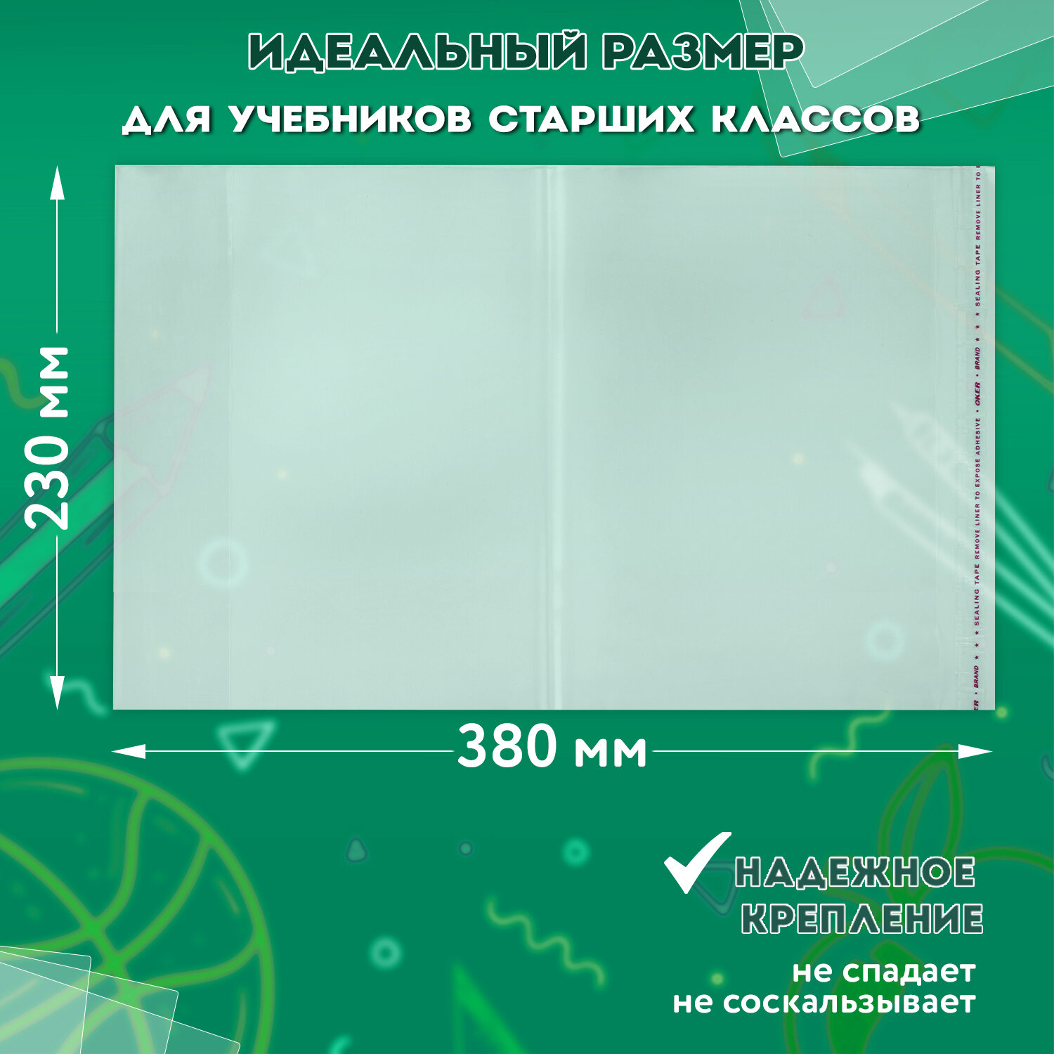 - Обложки ПП для учебников старших классов МАЛОГО ФОРМАТА, КОМПЛЕКТ 5 шт., КЛЕЙКИЙ КРАЙ, 70 мкм, 230х380 мм, прозрачные, ПИФАГОР, 227411
