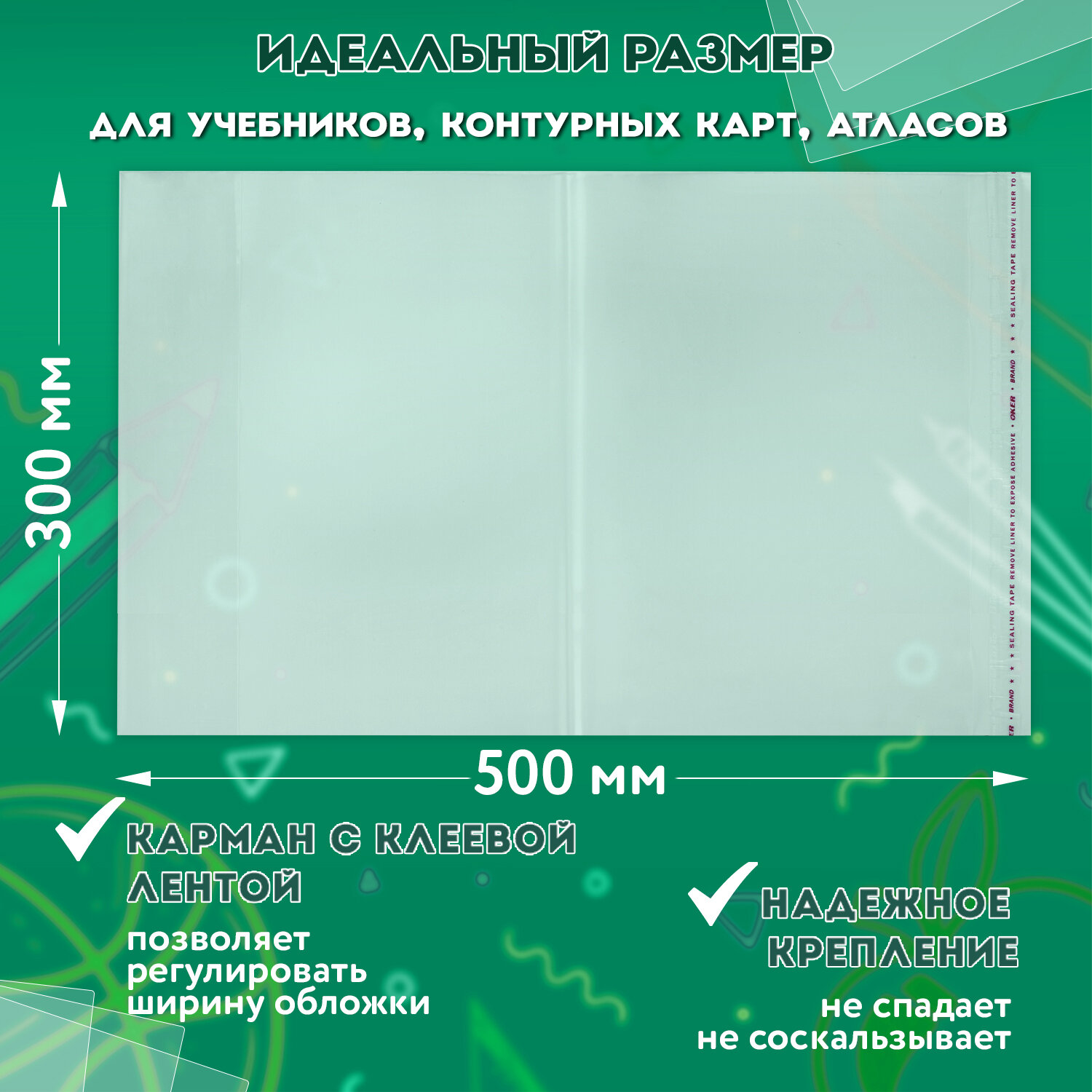 - Обложки ПП для учебников, тетрадей, контурных карт, атласов БОЛЬШОГО ФОРМАТА, КОМПЛЕКТ 5 шт., КЛЕЙКИЙ КРАЙ, 80 мкм,300х500 мм,ПИФАГОР,227420