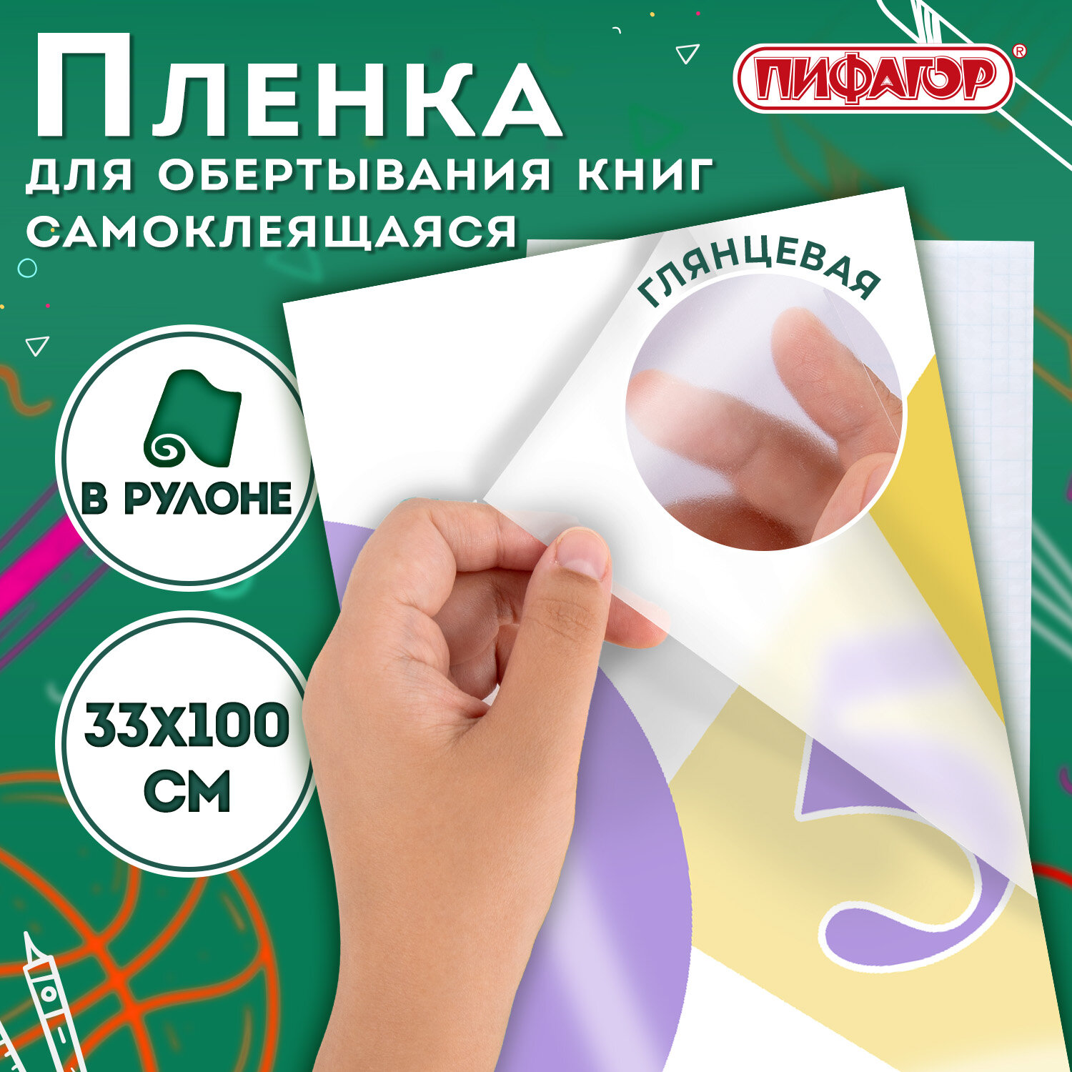 - Пленка самоклеящаяся для учебников и книг глянцевая, рулон 33х100 см, ПИФАГОР, 227205