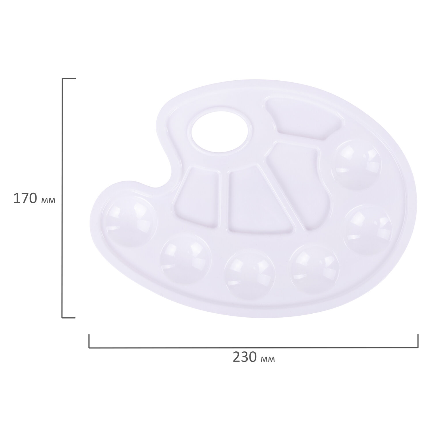 - Палитра для рисования ПИФАГОР белая, овальная, 6 ячеек для красок и 4 ячейки для смешивания, 227805