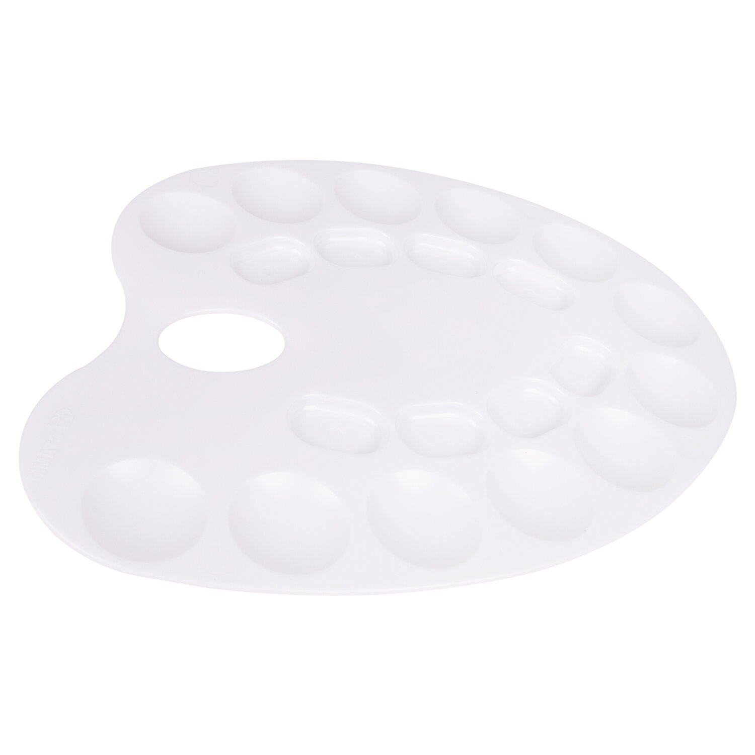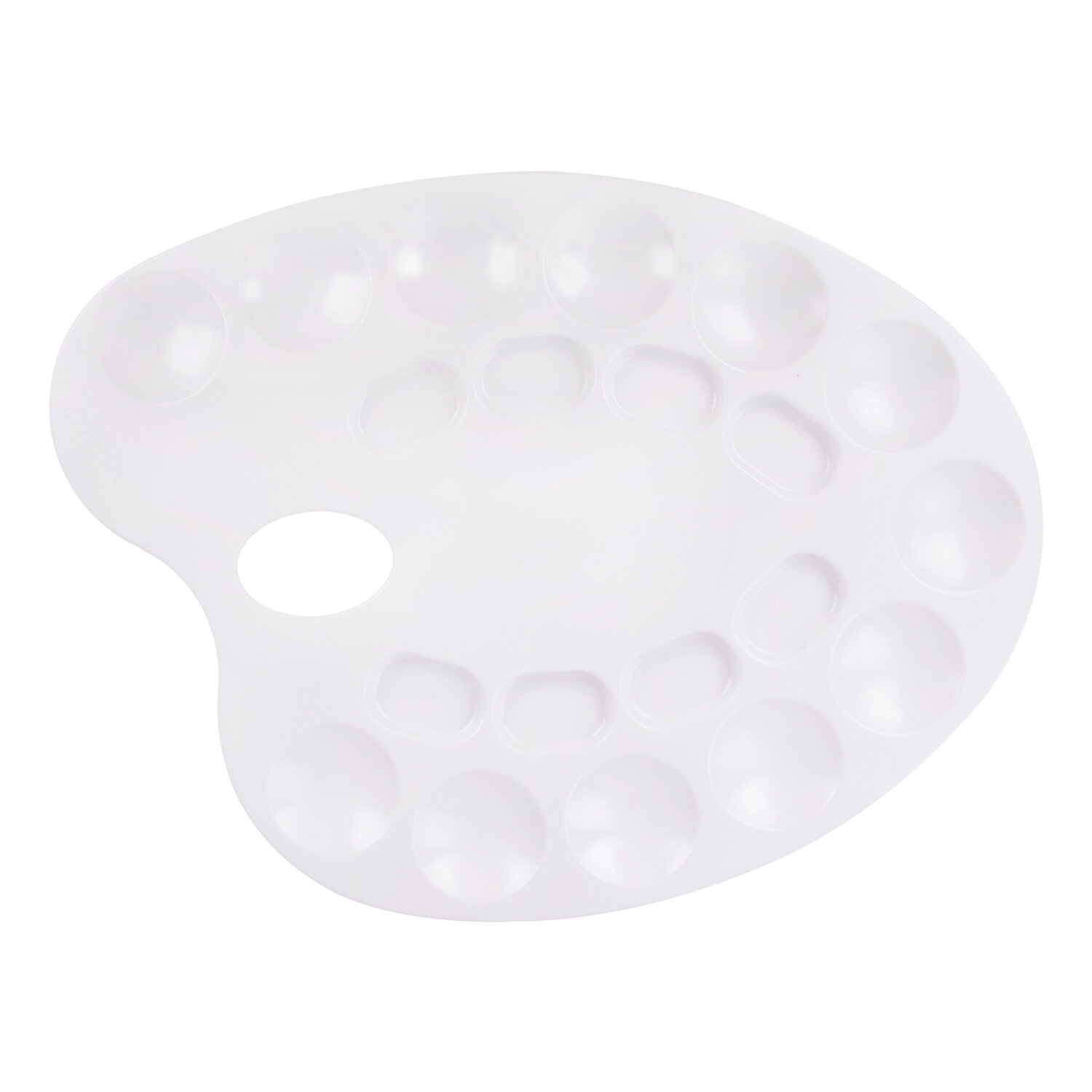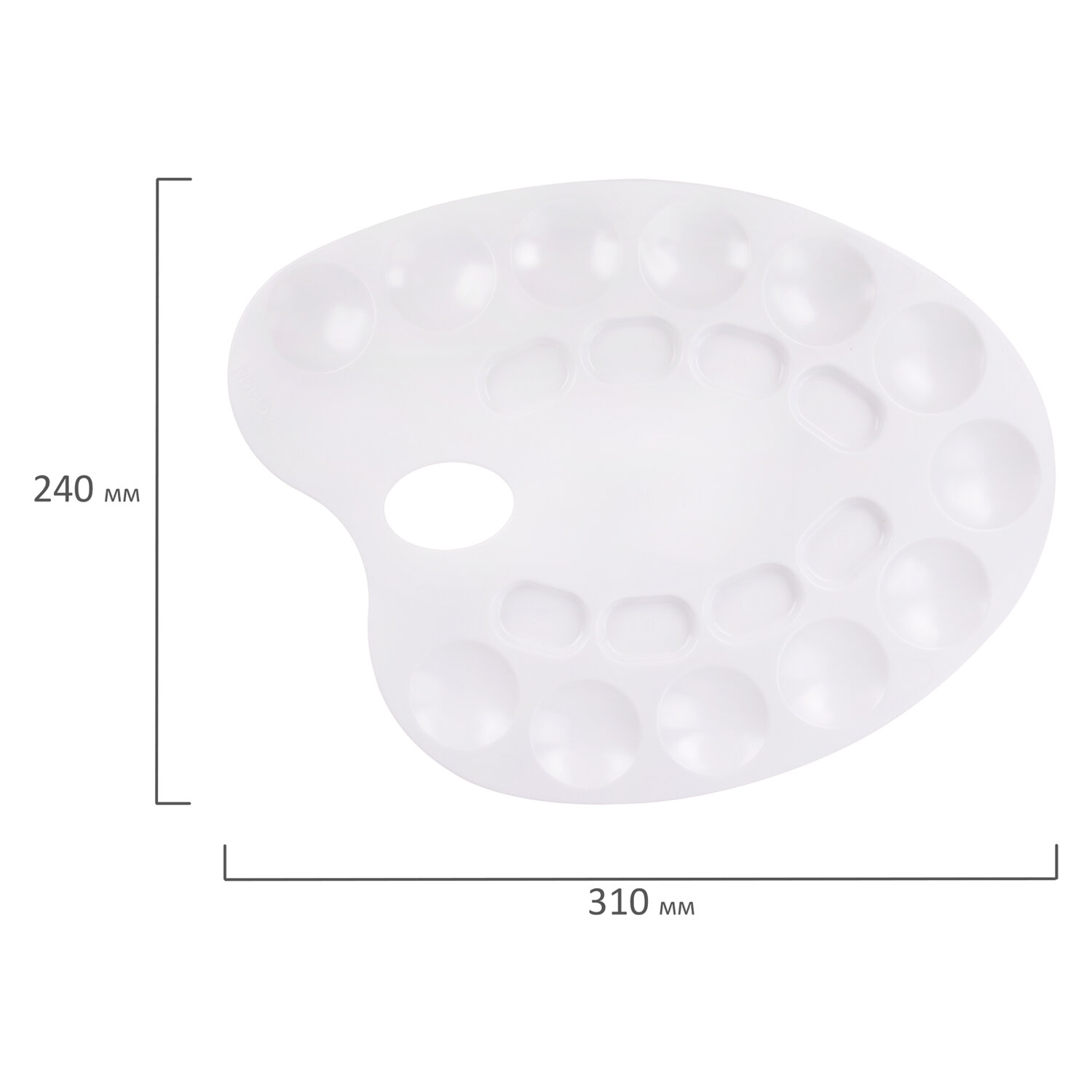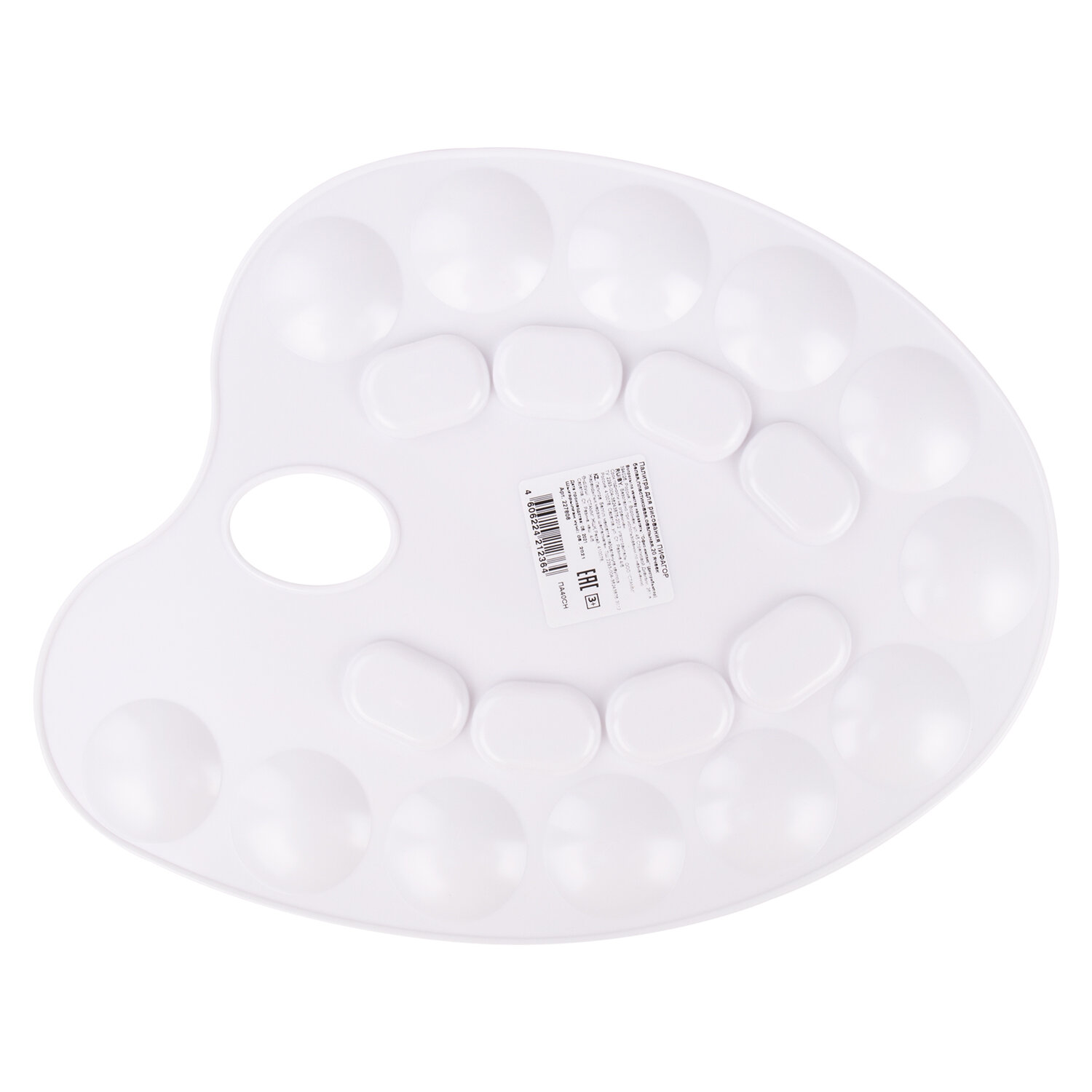 Легко отмывается после использования. Имеет 8 отделений для смешивания красок и 12 отделений для размещения красок. Палитра овальной формы с отверстием для удобства держания в руке изготовлена из высококачественного полистирола белого цвета. Размер - 24 х 31 х 0,6 см. Палитра для рисования ПИФАГОР белая, пластиковая, овальная, 20 ячеек, 227808