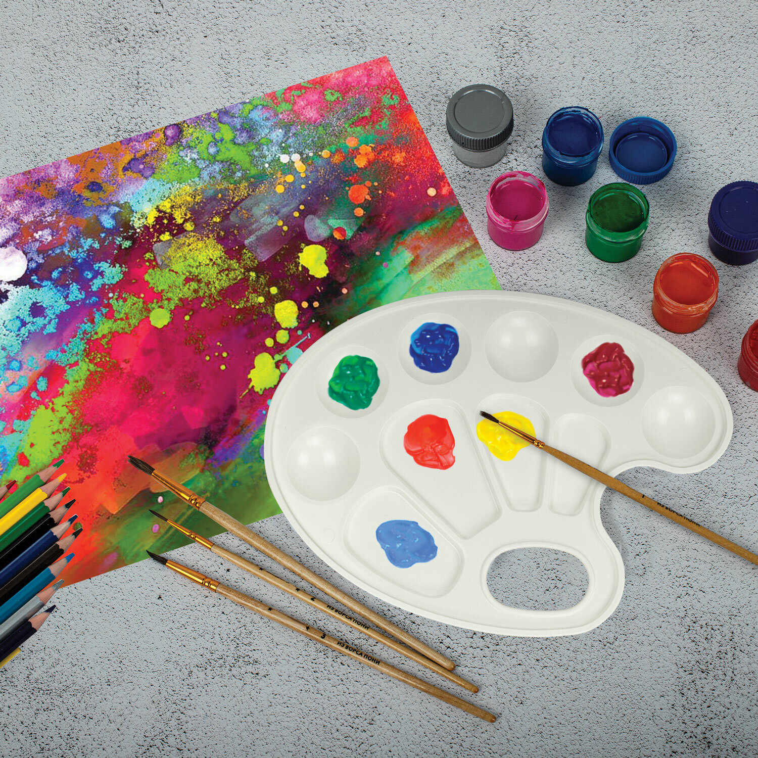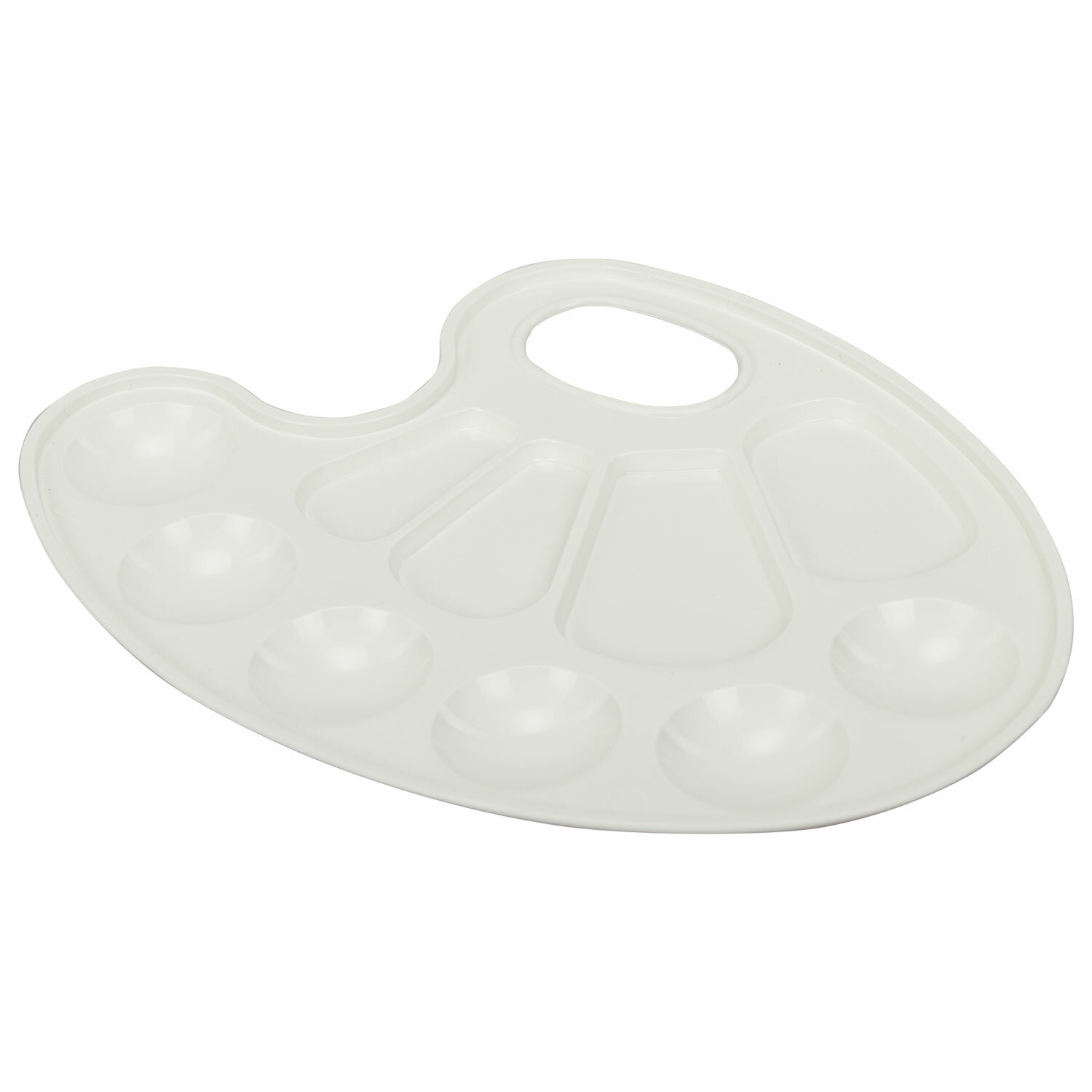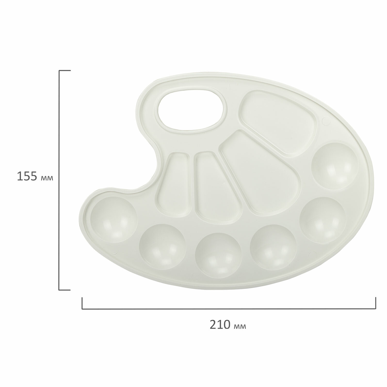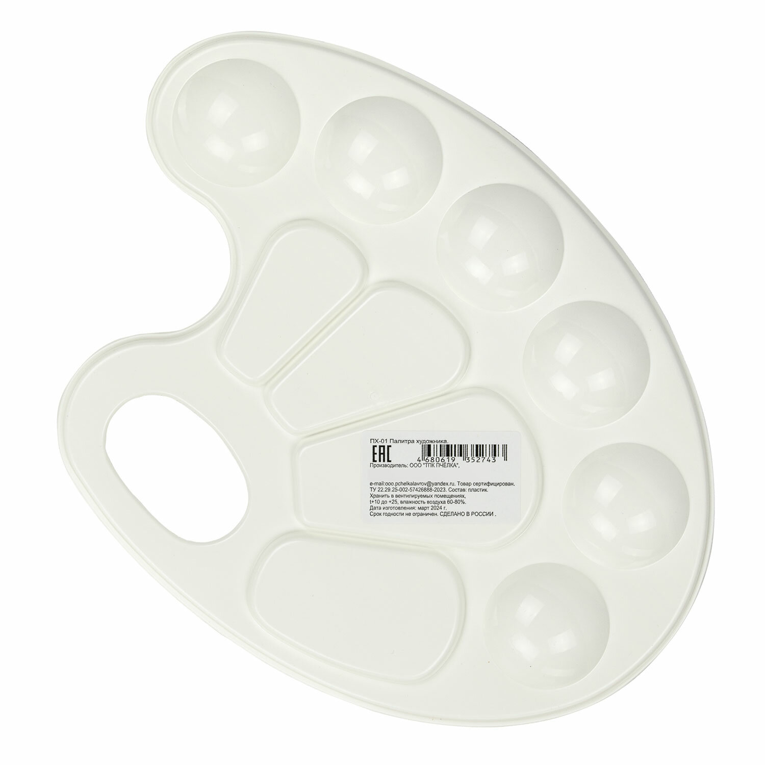 Палитра предназначена для смешивания красок. Удобна и проста в использовании. Позволяет получать новые оттенки путем смешивания цветов. По краю палитры есть 6 ячеек для размещения красок, а в центре палитры 4 отделения для смешивания. Палитра для рисования, ПХ-1