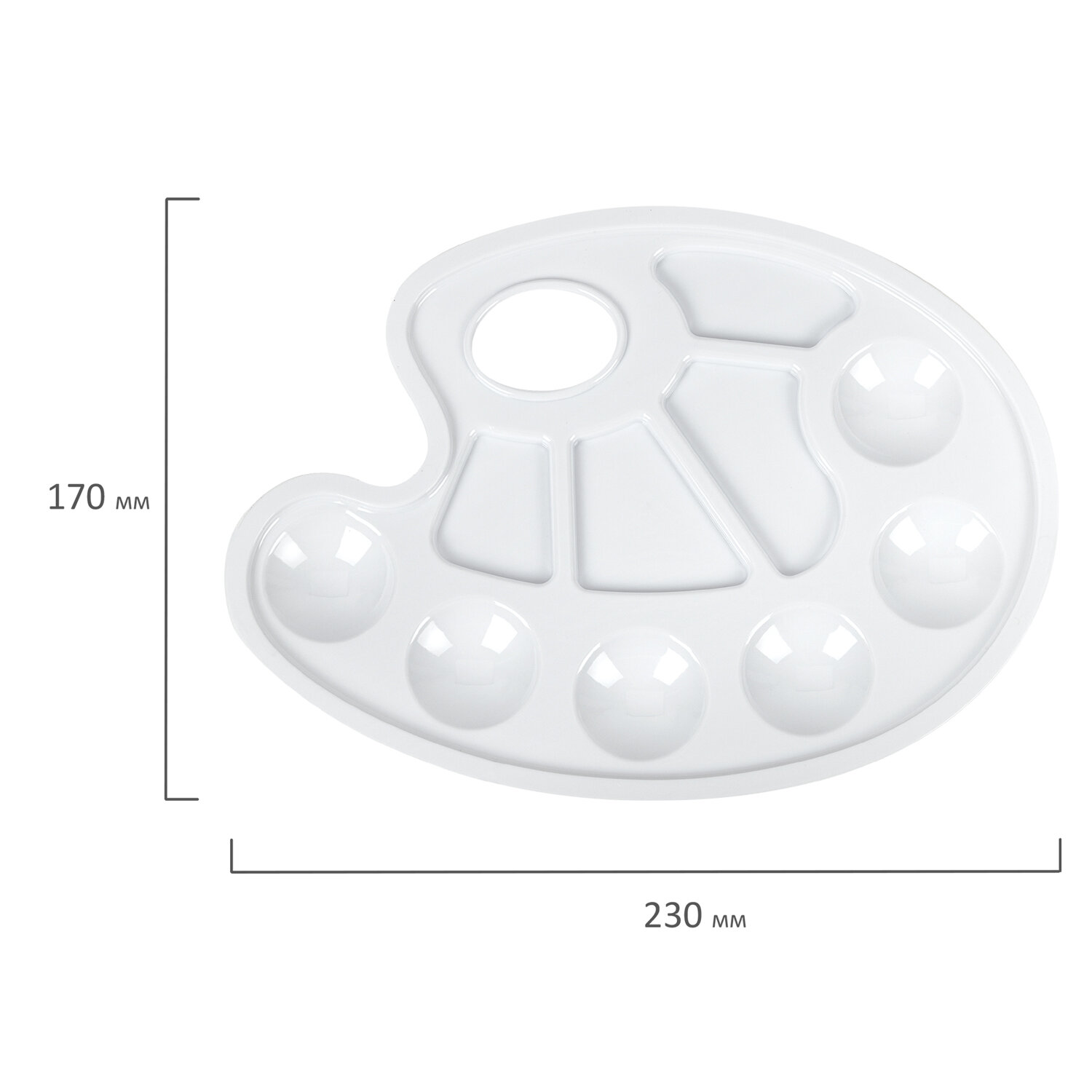 - Палитра для рисования ЮНЛАНДИЯ белая, овальная, 6 ячеек для красок и 4 для смешивания, европодвес, 227806