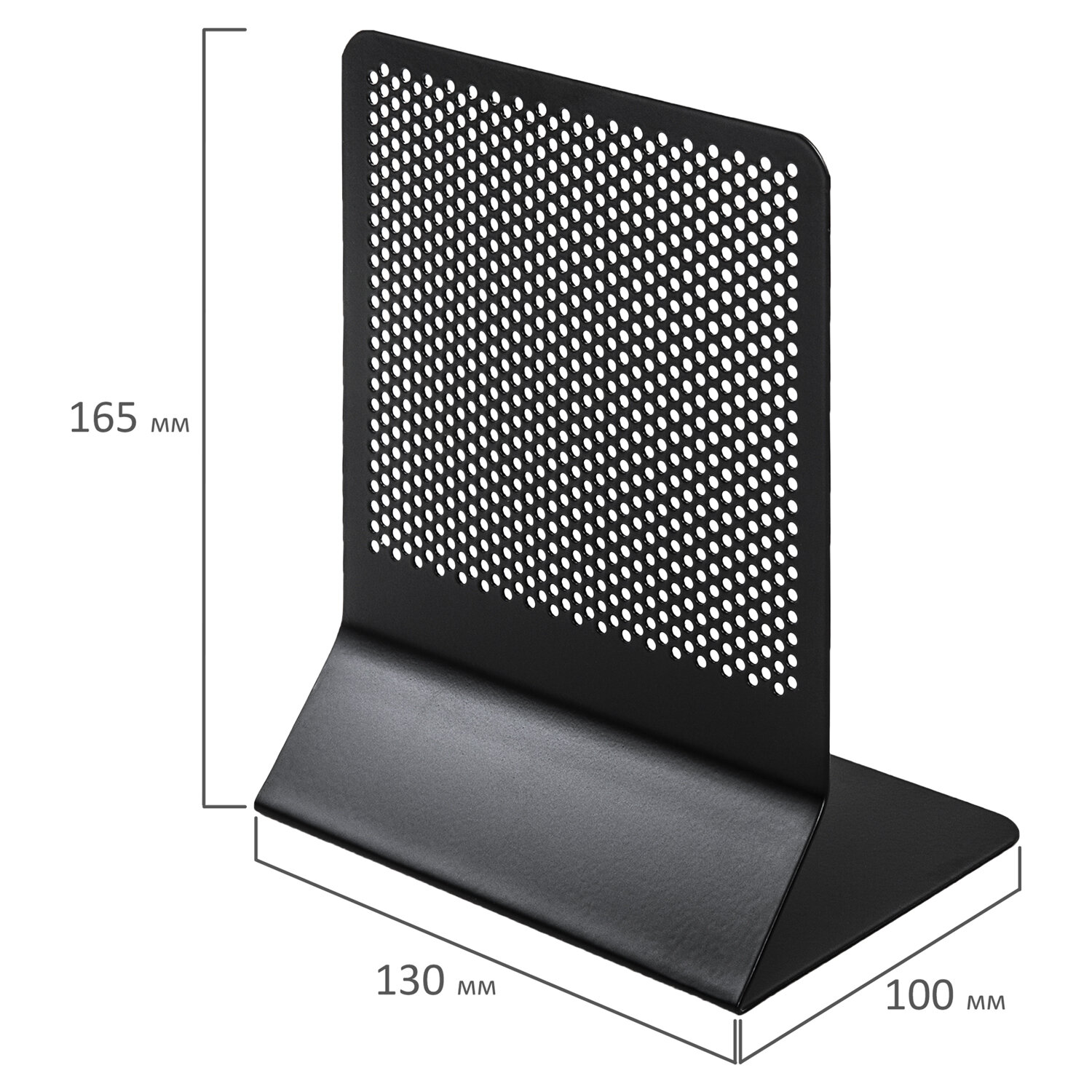 Удобные и практичные ограничители BRAUBERG t;Germanium Originalt; изготовлены из стали, что делает их максимально прочными и долговечными. Толщина металла 0,7 мм обеспечивает необходимый уровень жесткости, благодаря которому ограничители способны удержать даже увесистые книги. Держатели покрыты высококачественной краской, на которой не остаются отпечатки пальцев. Цвет - черный. Размер каждого ограничителя 165х130х100 мм. Комплект из 2-х штук. Лаконичный дизайн идеально подойдет и для домашнего, и для офисного использования. Держатель (ограничитель) подставка для книг BRAUBERG "Germanium Original", КОМПЛЕКТ 2 штуки, металл, 237978