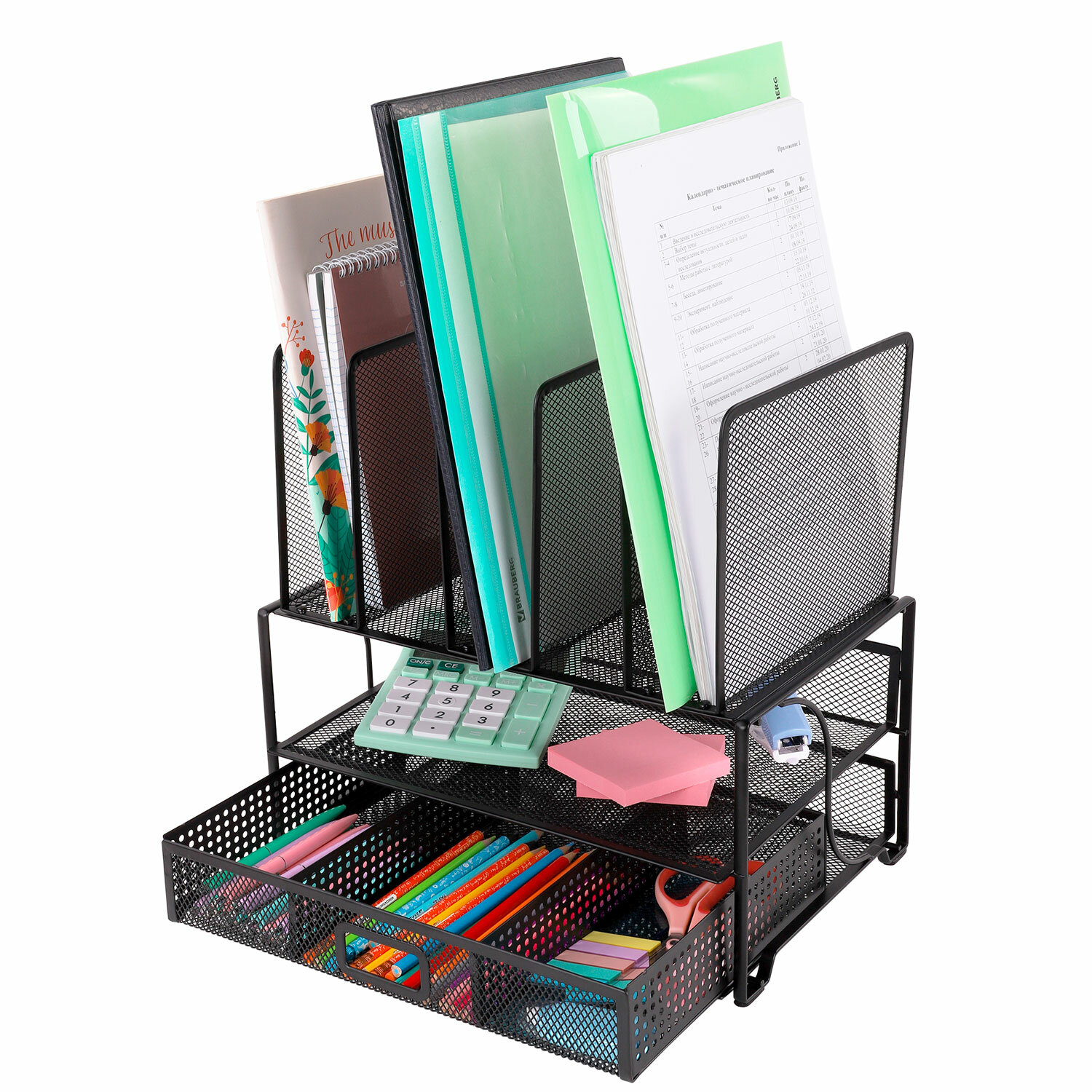 Благодаря своему стильному дизайну, удобству использования и надёжности, органайзер BRAUBERG станет незаменимым аксессуаром для вашего рабочего стола. Он поможет вам организовать рабочее пространство и всегда держать нужные вещи под рукой. Органайзер многосекционный металлический BRAUBERG "Germanium", 335х228х335 мм, черный, 272474