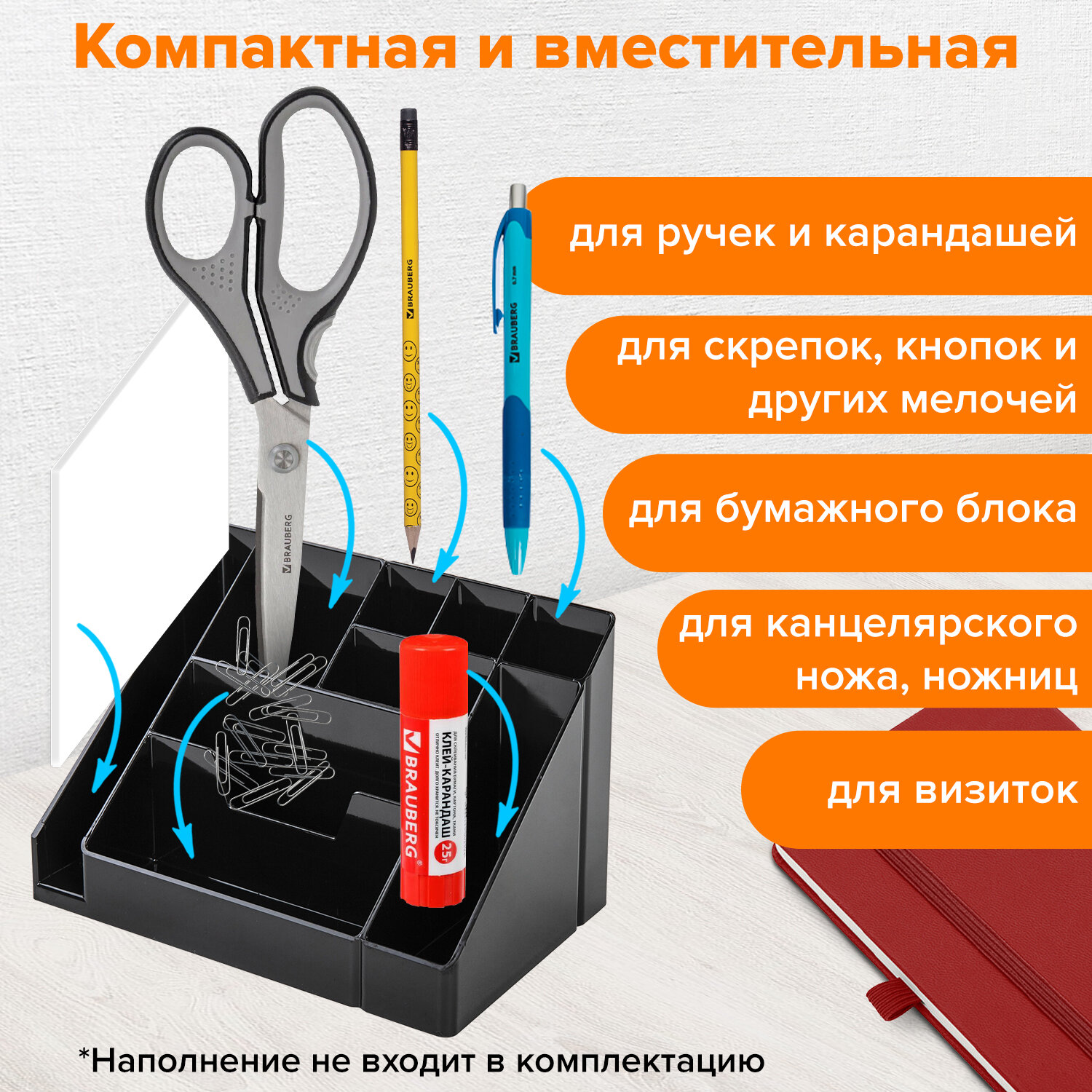 - Подставка-органайзер BRAUBERG GRAND OFFICE, 9 отделений, 115х160х105 мм, черная, 238098