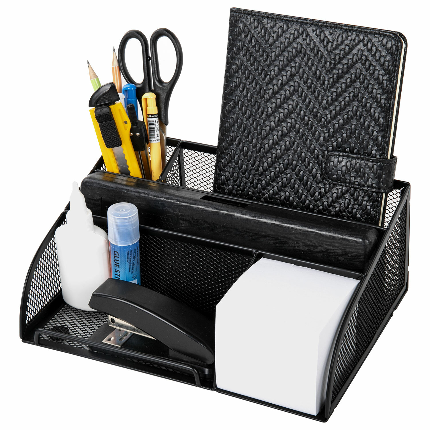 - Подставка-органайзер BRAUBERG "Germanium", 5 секций, 255х180х105 мм, металл, черная, 237973