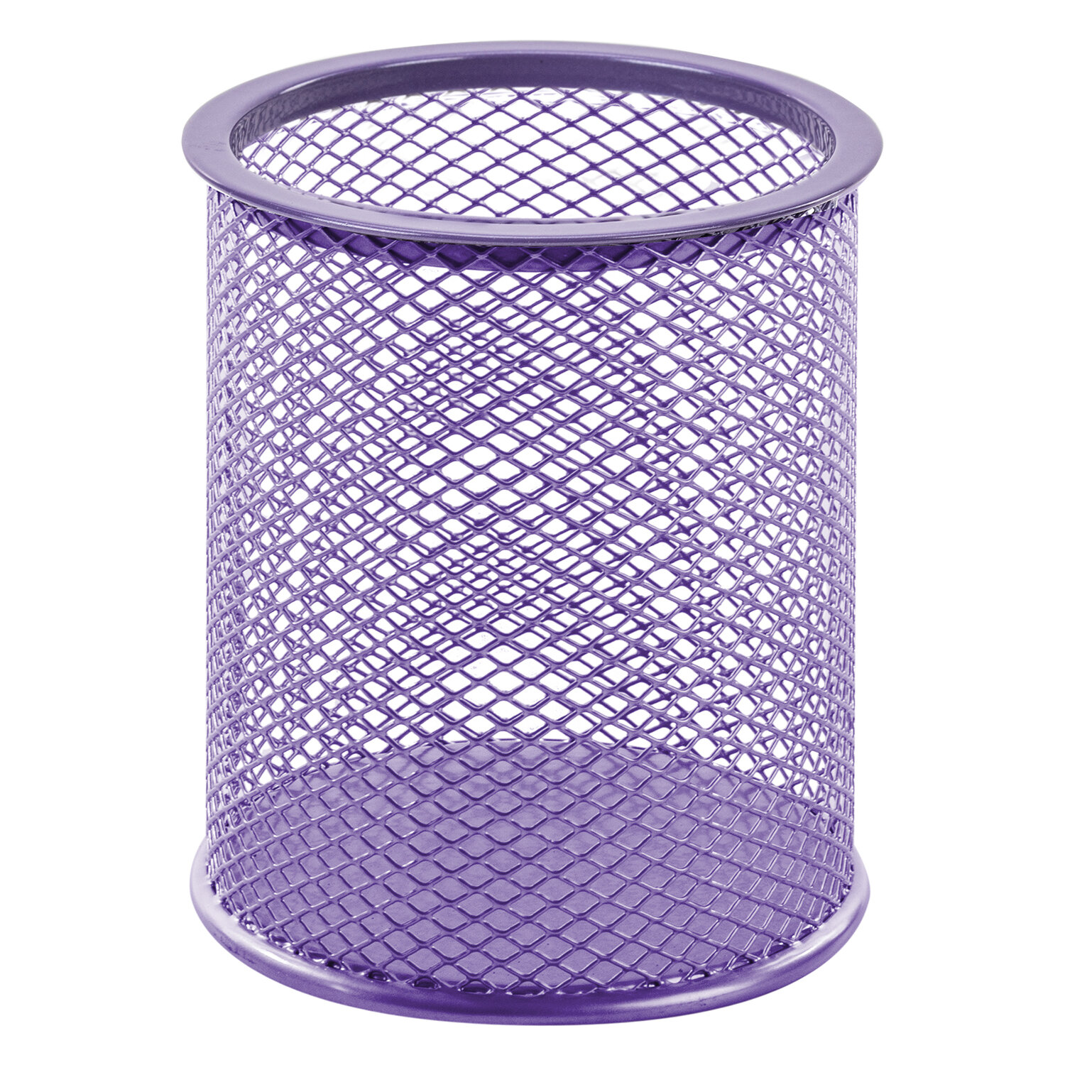 Изготовлена из металлической сетки. Имеет размеры 100х89х89 мм. Состоит из одного отделения. Мягкие подушечки на дне предотвращают скольжение и порчу мебели. Поставляется без канцелярского наполнения. Подставка-органайзер BRAUBERG "Germanium", металлическая, круглое основание, 100х89 мм, фиолетовая, 231981