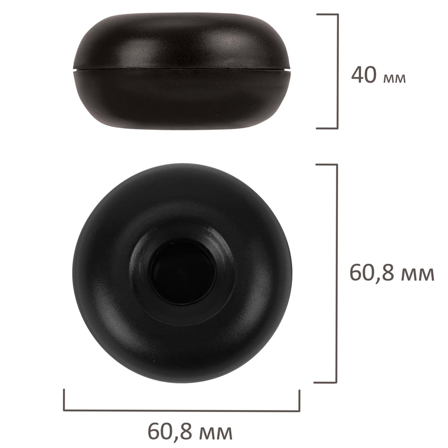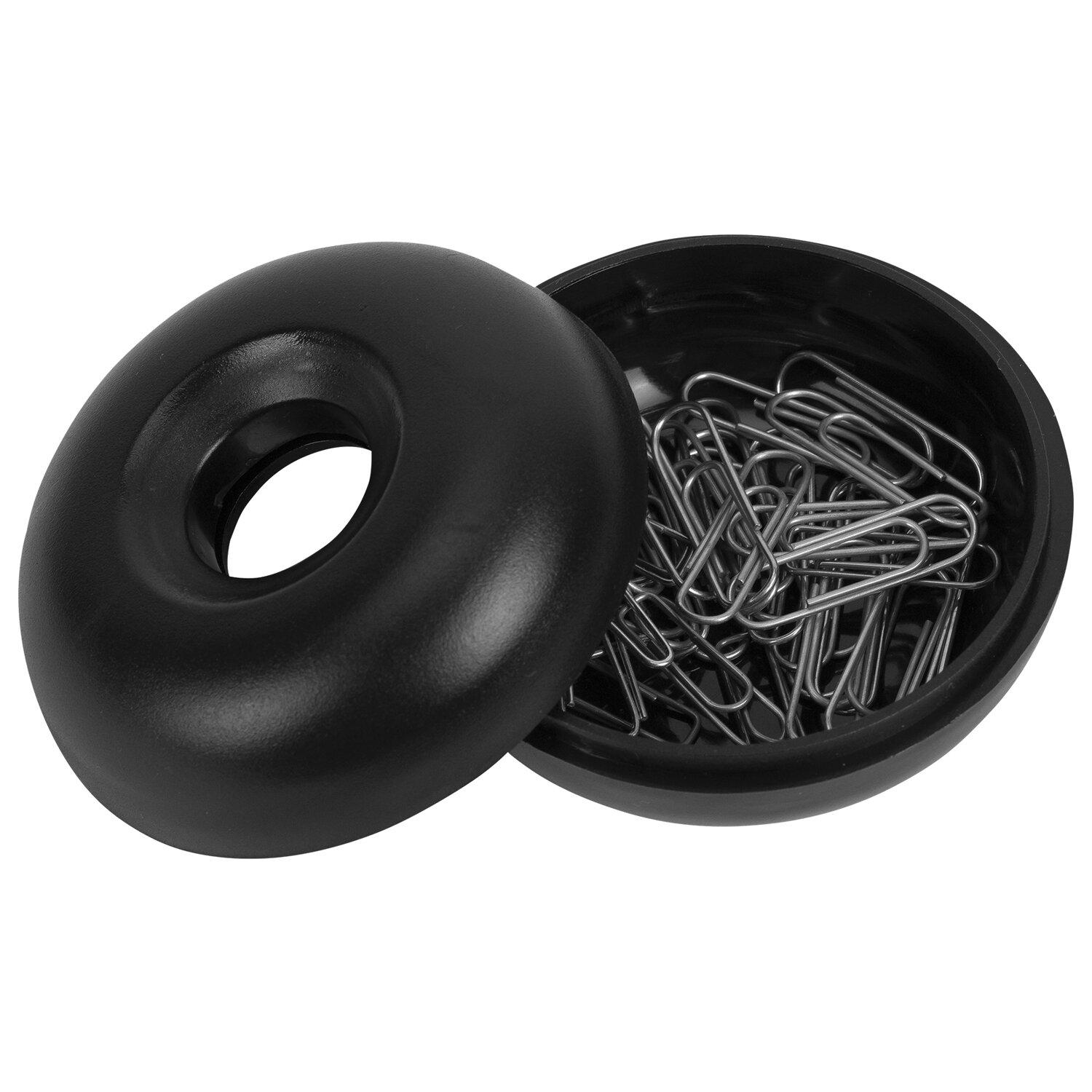 Скрепочница округлой формы выполнена из черного пластика. Встроенный магнит предотвращает высыпание скрепок. Размер - 4x6х6 см. Скрепочница магнитная STAFF, черный корпус, 226825