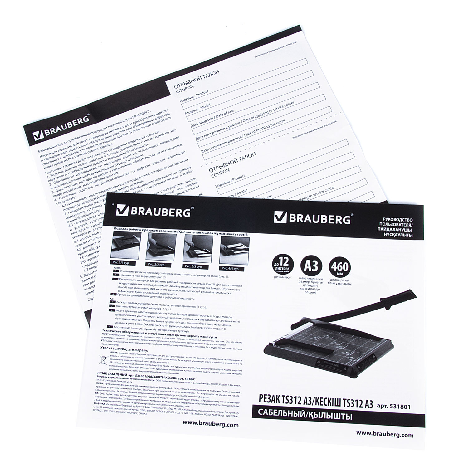 - Резак сабельный BRAUBERG TS312 SABER, на 12 л., длина реза 460 мм, металлическое основание, A3, 531801