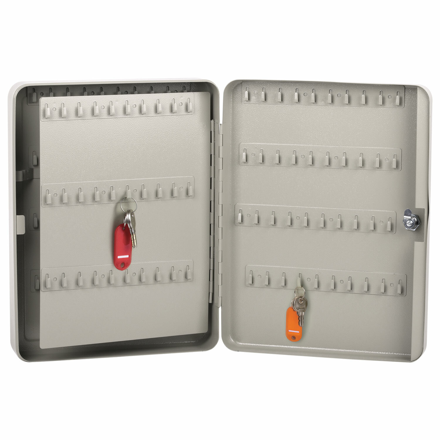- Шкафчик (Ключница) на 140 ключей BRAUBERG, 370х280х80 мм, с замком, +140 брелоков, серый, 290340