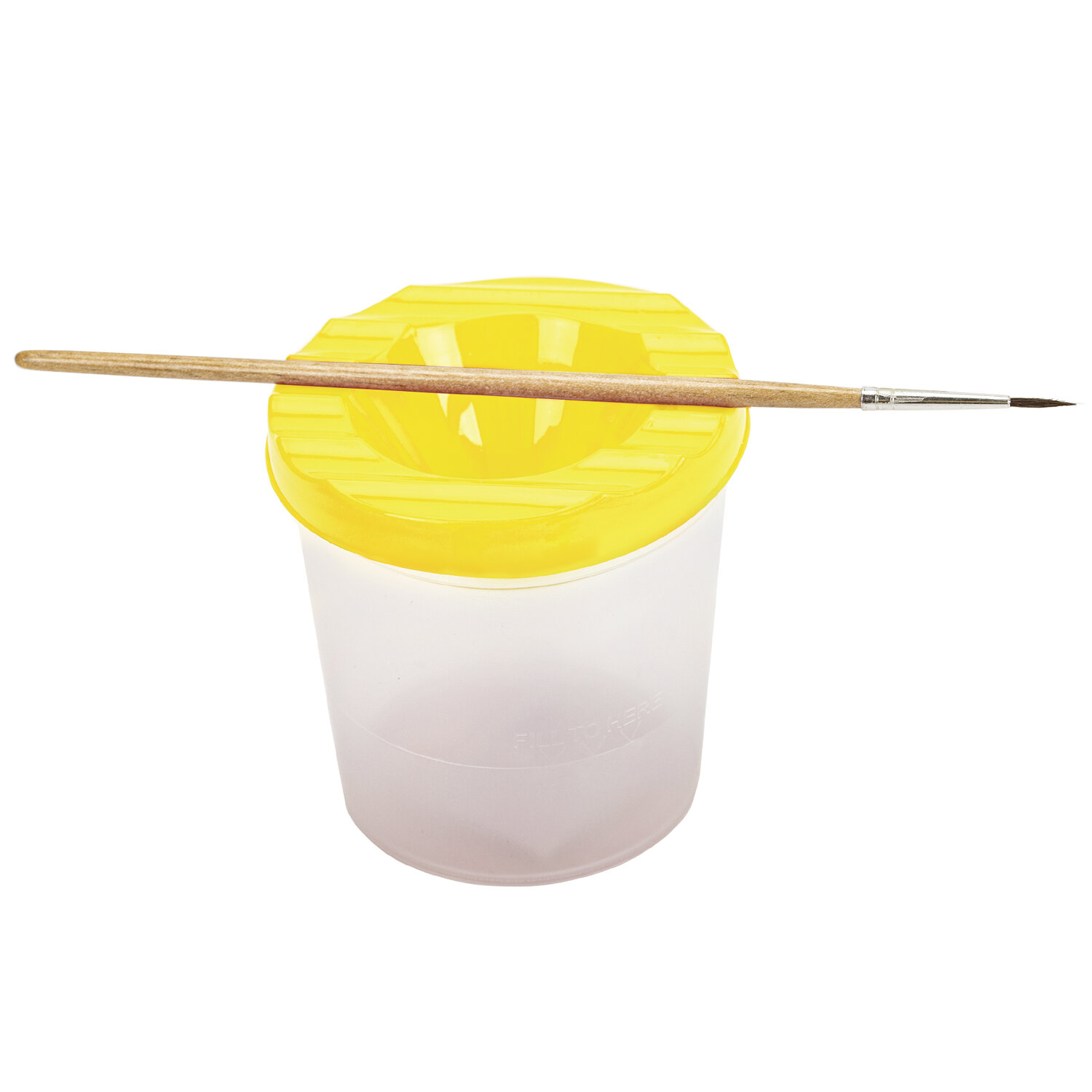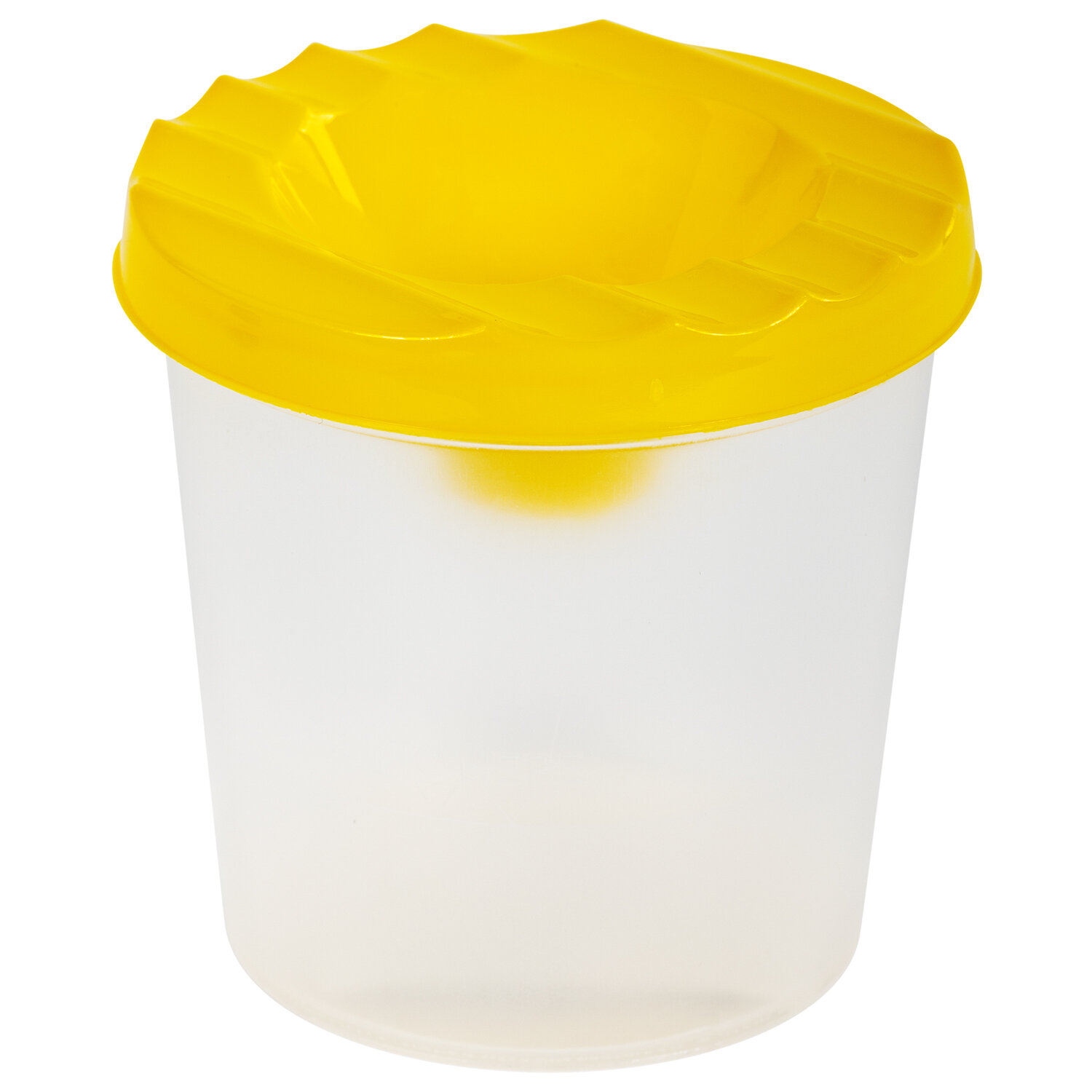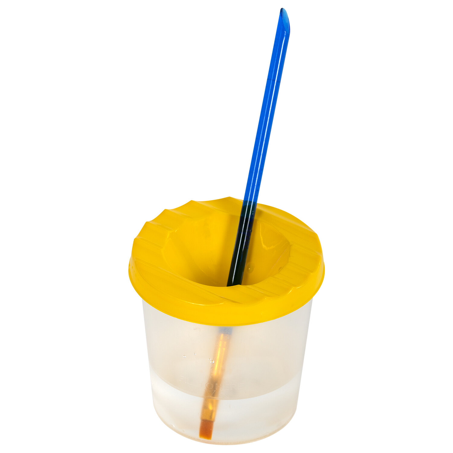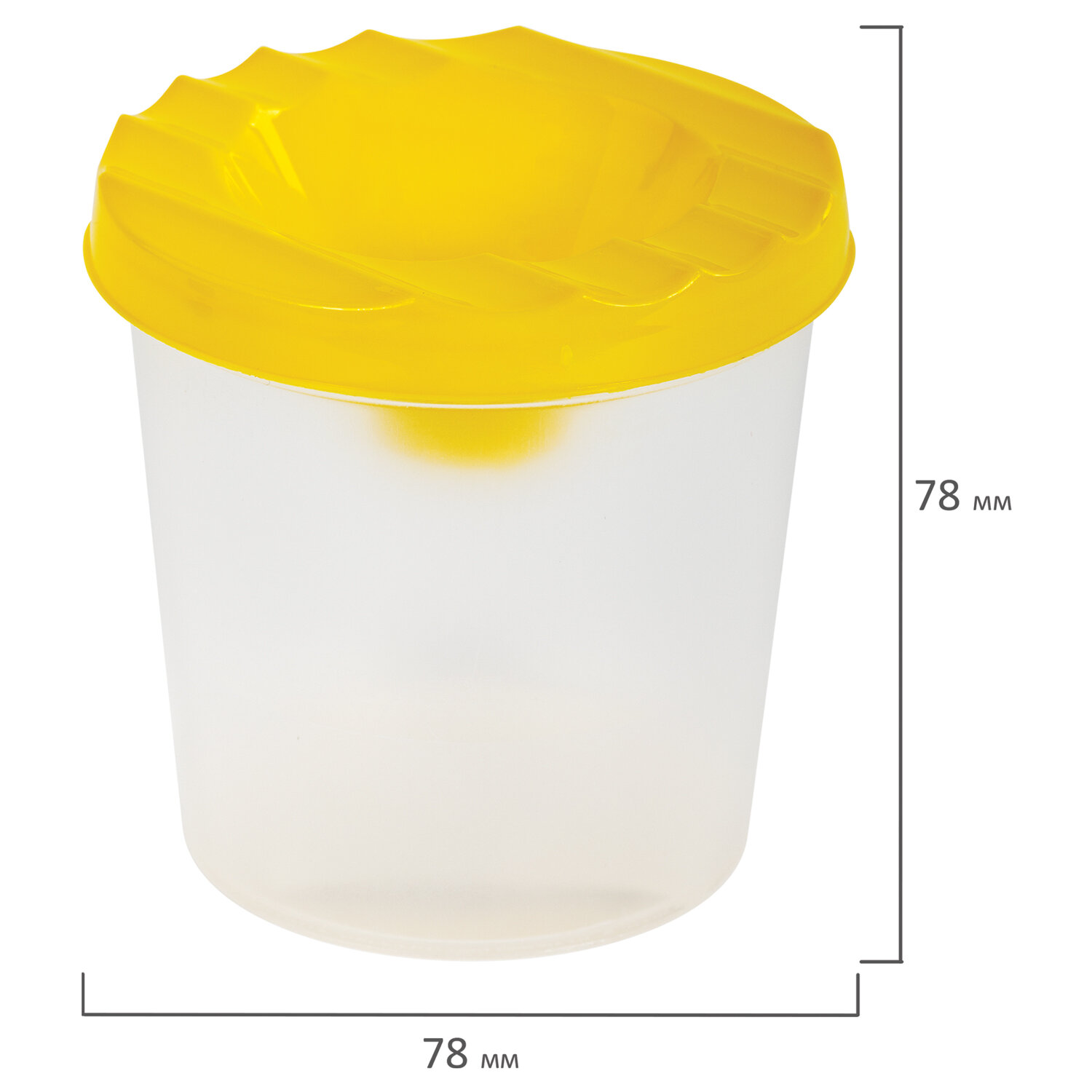 Стакан выполнен из прочного пластика. Линия на прозрачном корпусе указывает на максимально возможный уровень наполнения. Специальная форма крышки стакана исключает возможность вытекания воды. На крышке имеются углубления для размещения кисточек. Полный объем - 210 мл. Объем до уровня наполнения - 75 мл.