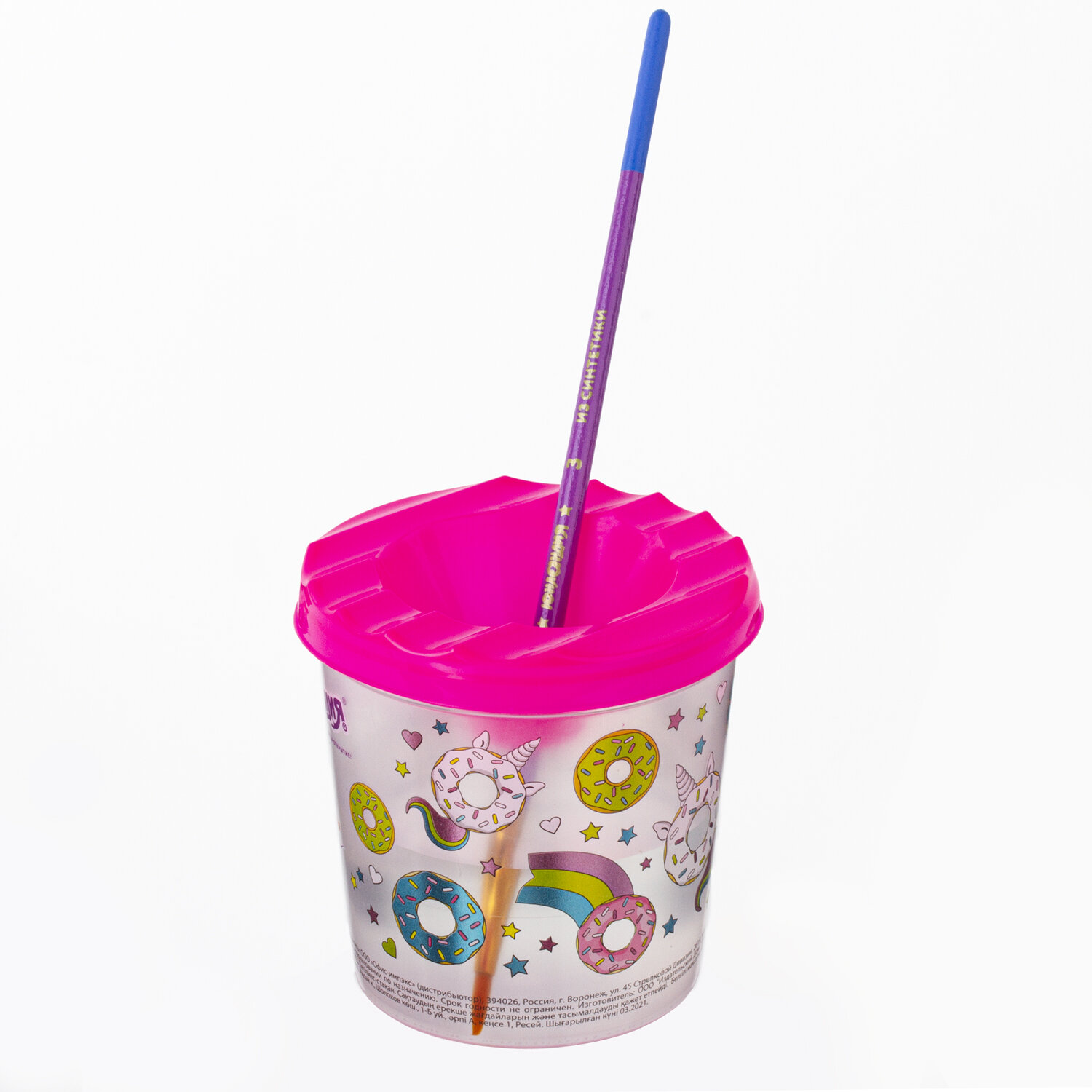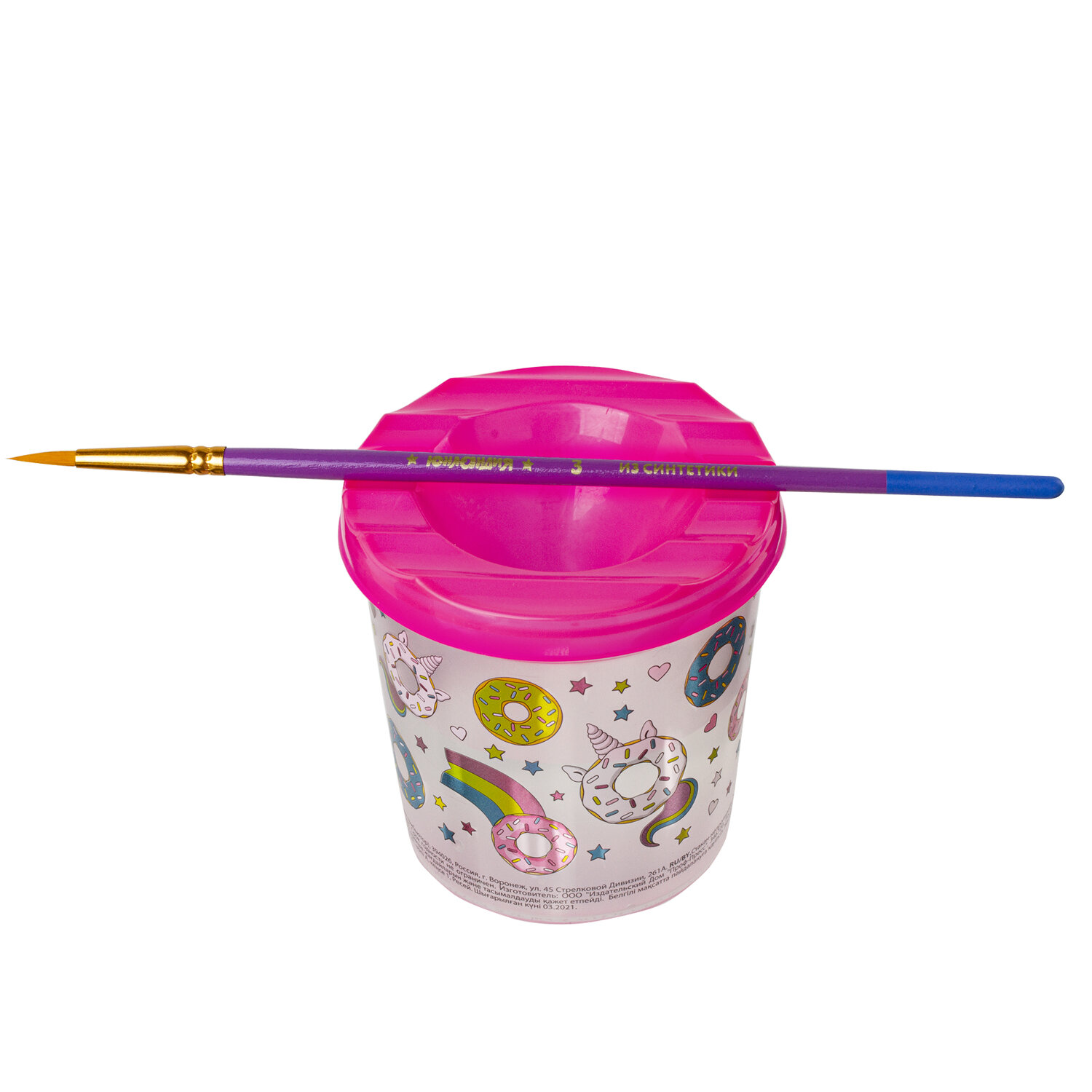 Специальная форма крышки стакана исключает возможность вытекания воды. Линия на прозрачном корпусе указывает на максимально возможный уровень наполнения. Выполнен из прочного пластика. Имеются специальные углубления на крышке для размещения кисточек. Полный объем - 210 мл. Объем до уровня - 75 мл. Оригинальный дизайн сделает процесс рисования еще более увлекательным. Стакан-непроливайка с рисунком "СЛАДКИЕ ИСТОРИИ" ЮНЛАНДИЯ, 191734