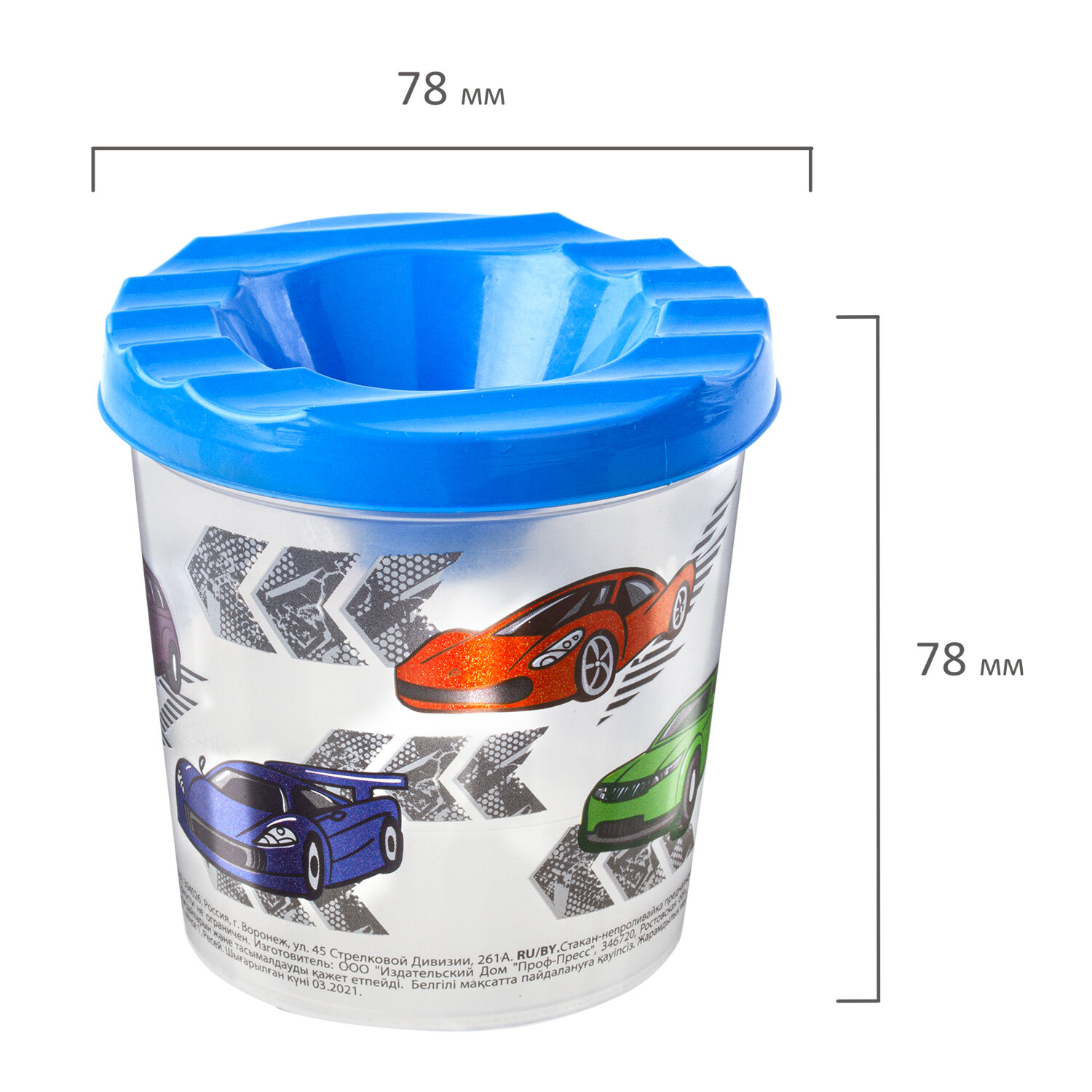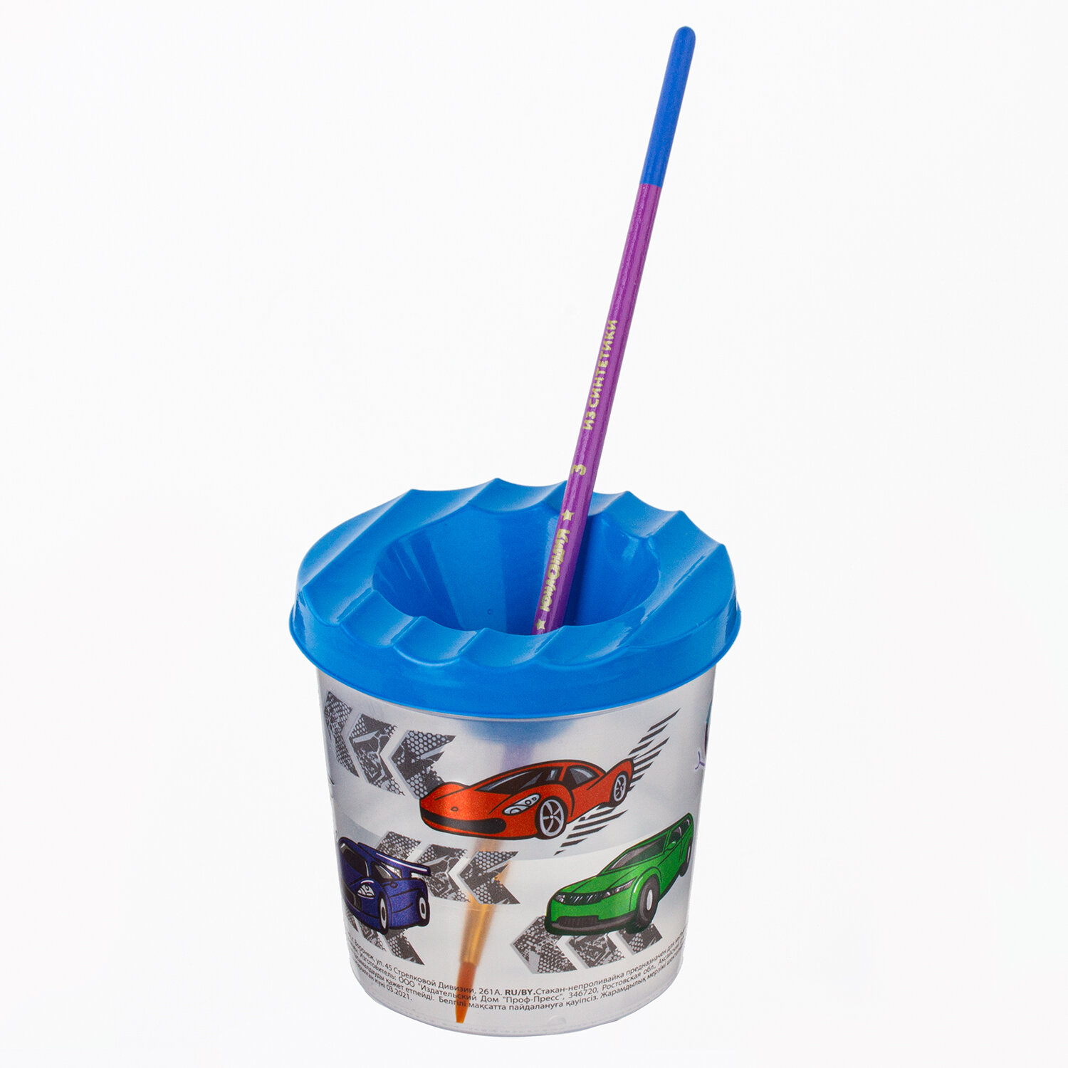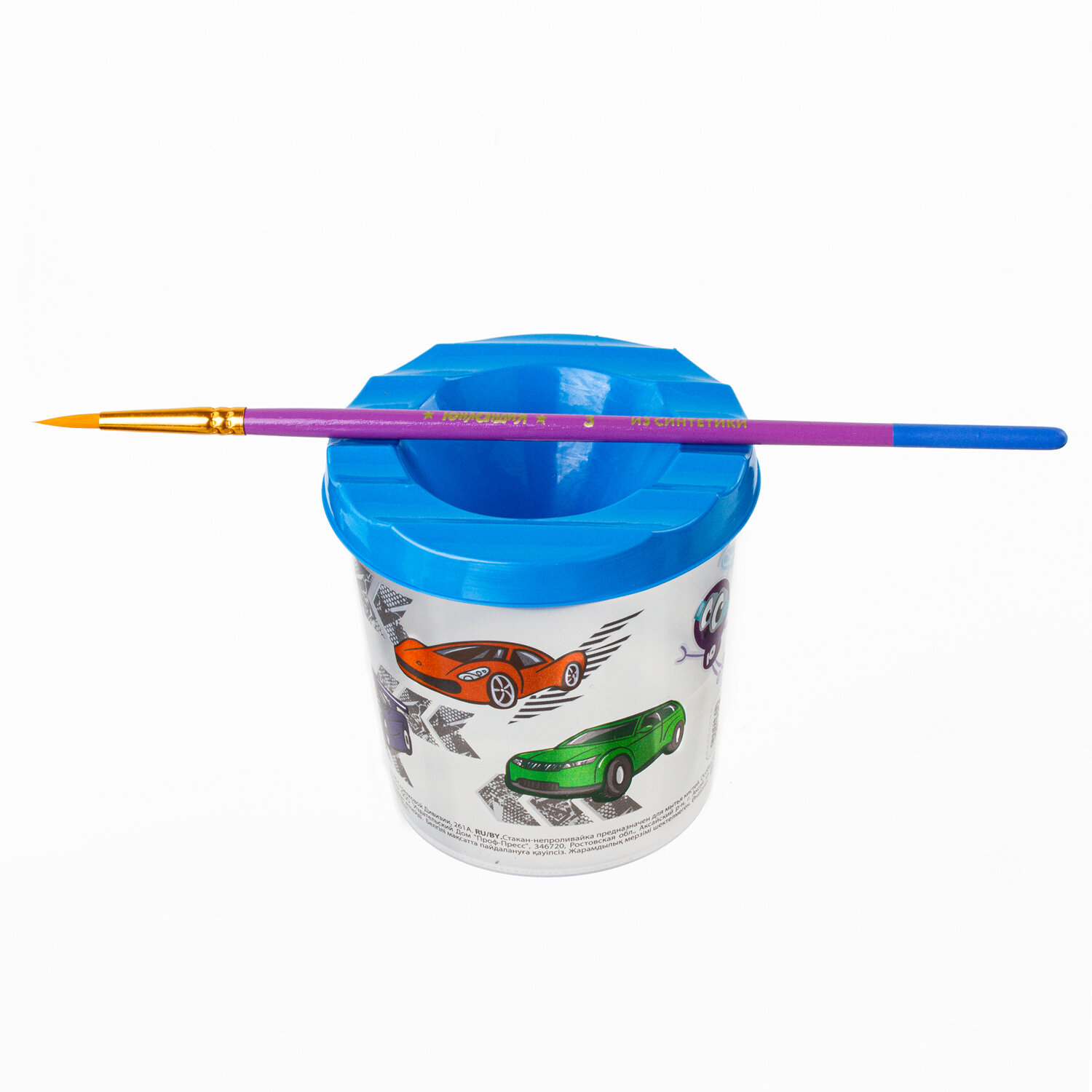 Специальная форма крышки стакана исключает возможность вытекания воды. Линия на прозрачном корпусе указывает на максимально возможный уровень наполнения. Выполнен из прочного пластика. Имеются специальные углубления на крышке для размещения кисточек. Полный объем - 210 мл. Объем до уровня - 75 мл. Оригинальный дизайн сделает процесс рисования еще более увлекательным. Стакан-непроливайка с рисунком "ЮНЛАНДИК БЫСТРЕЕ ВСЕХ" ЮНЛАНДИЯ, 191733
