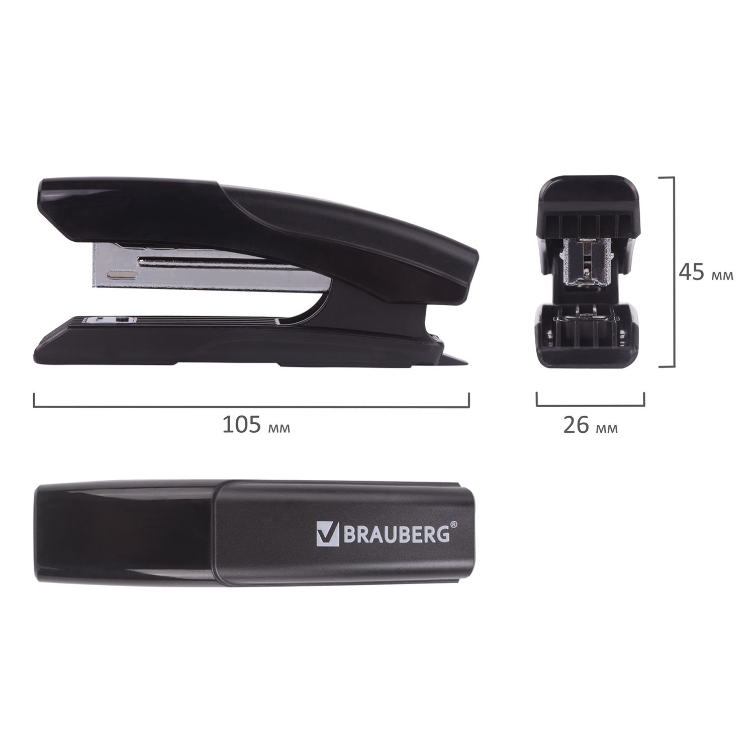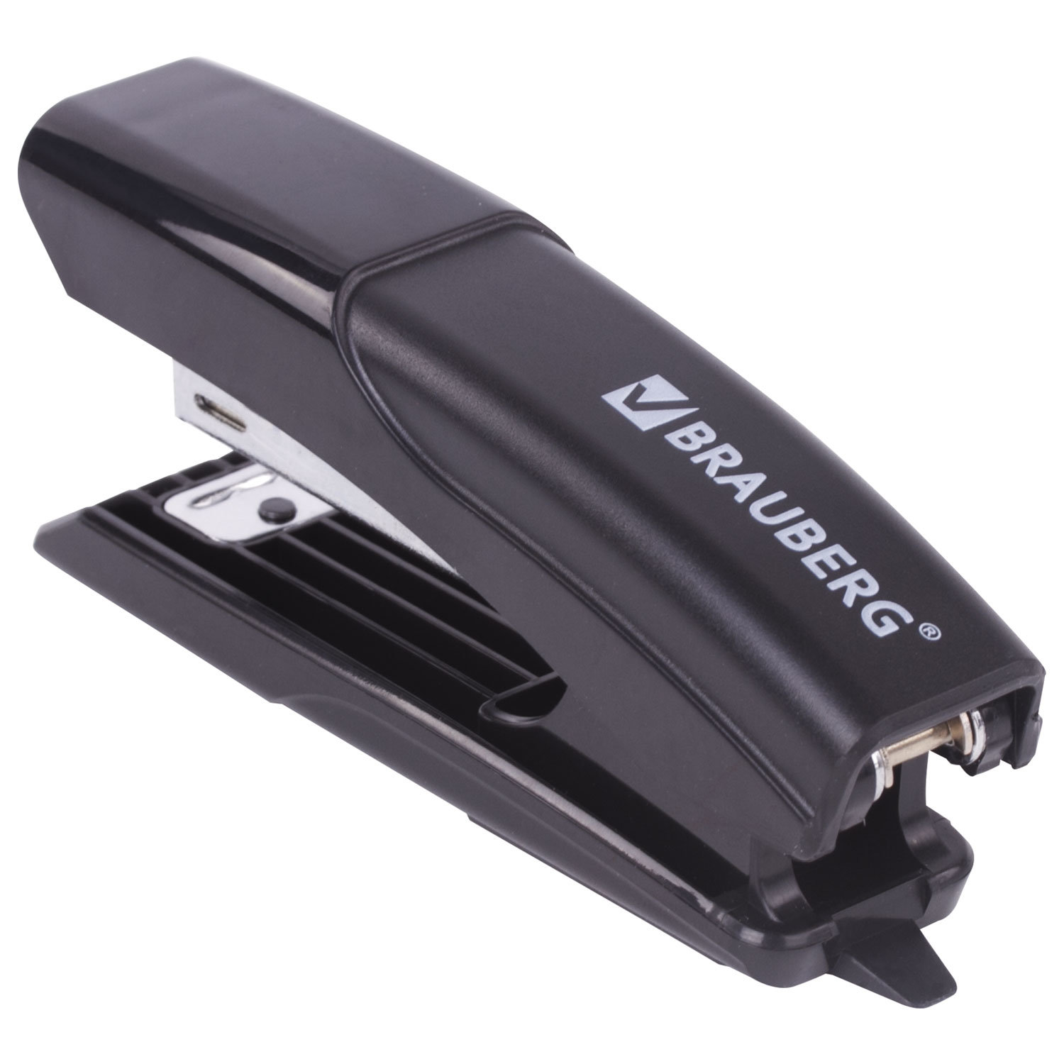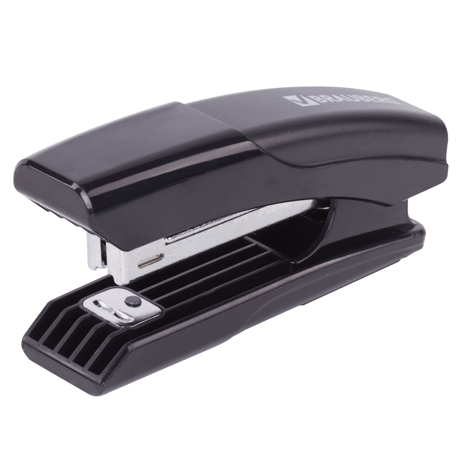 Высокое качество степлера BRAUBERG t;Black Jackt; по доступной цене надолго станет незаменимым помощником при работе с документацией. Степлер №10 BRAUBERG "Black Jack", до 18 листов, антистеплер, черный, 227763