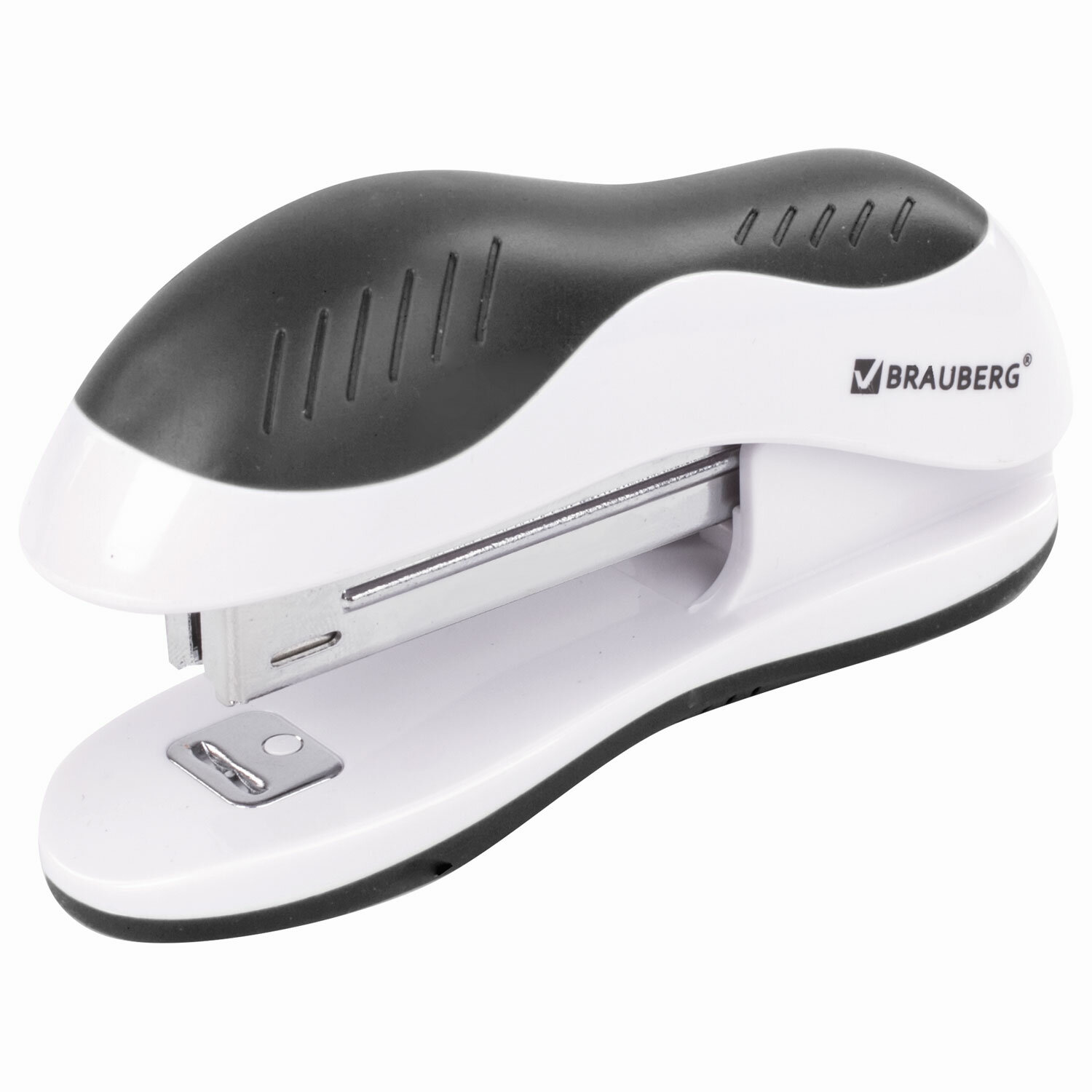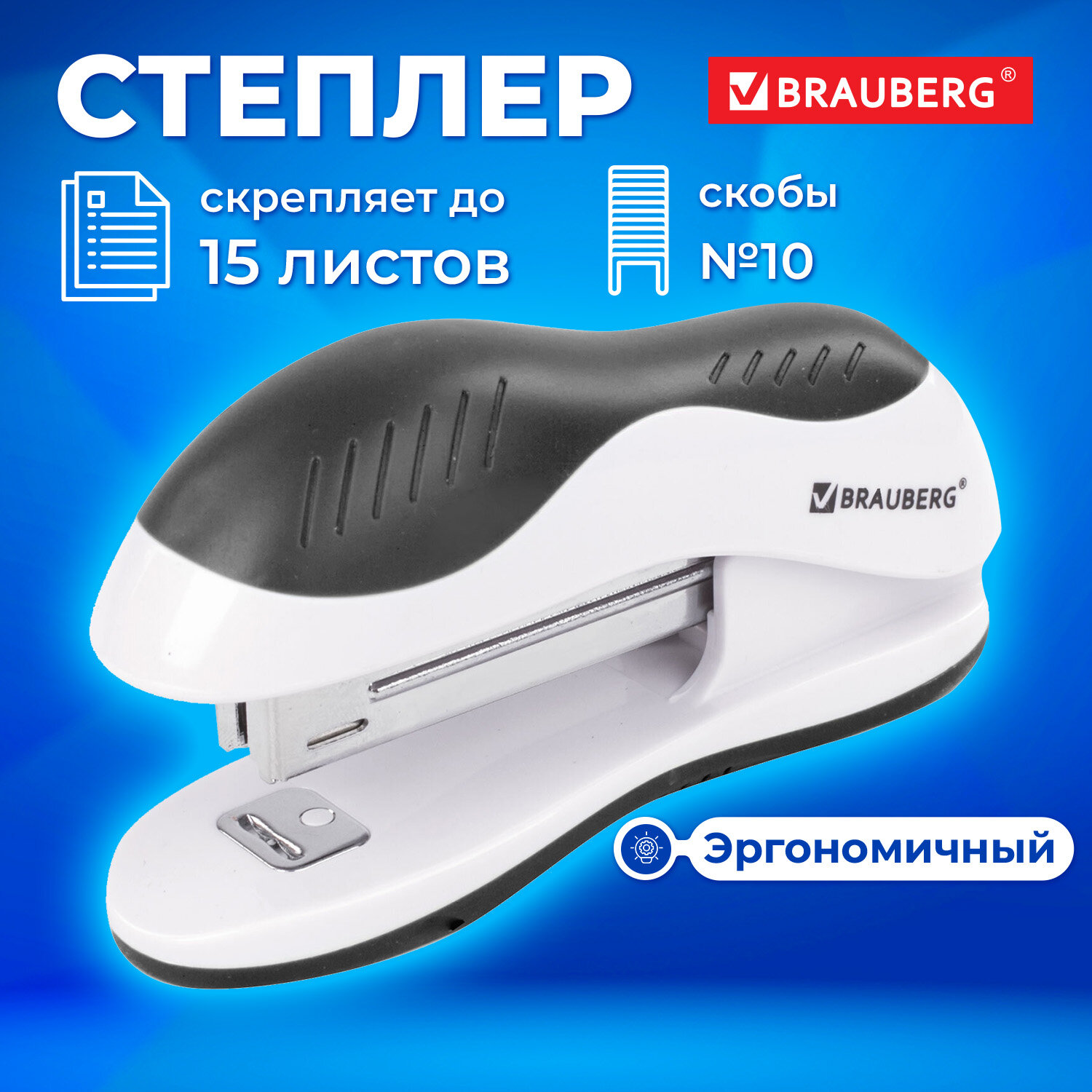 - Степлер №10 BRAUBERG "JET", до 15 листов, эргономичный, бело-черный, 228581