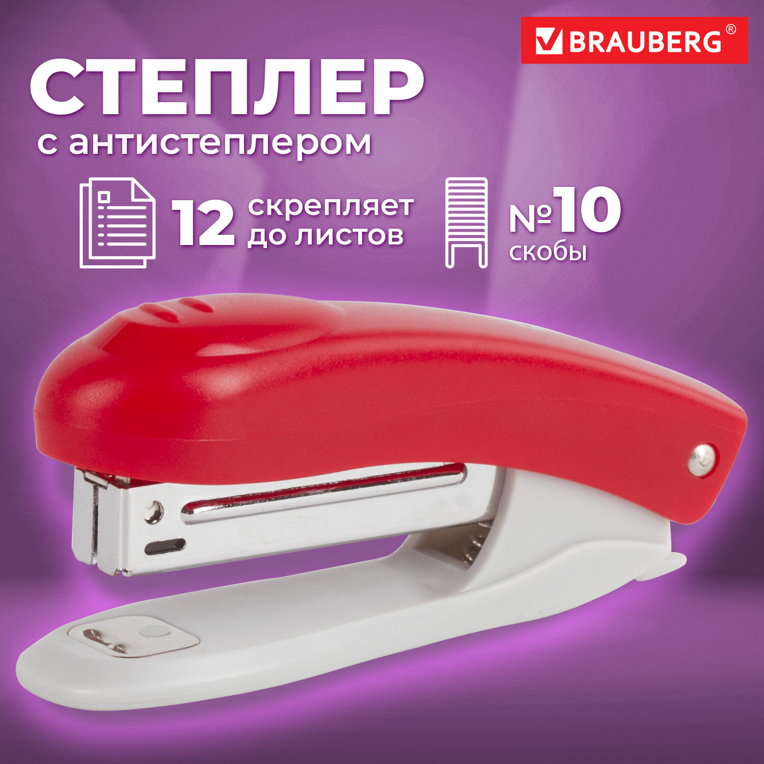 - Степлер №10 BRAUBERG "Original", до 12 листов, с антистеплером, красный, 222532
