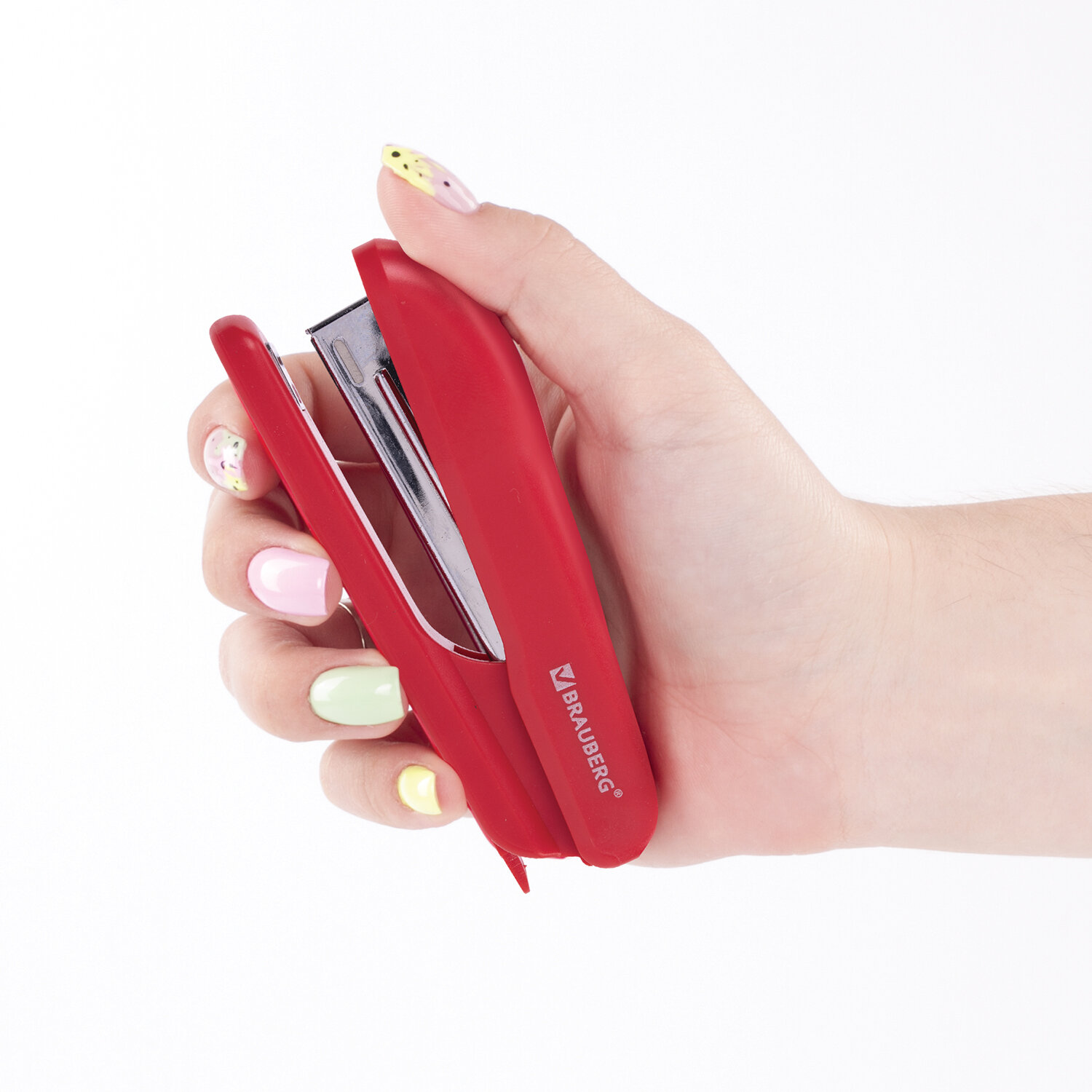 Способен скрепить до 12 листов. Стандартный размер скоб №10. Глубина закладки бумаги - 50 мм. Виды сшивания: закрытый, прямой. Данная модель может выступать в качестве антистеплера, позволяющего разжать закрепленные скобы более качественно, не нанося повреждений ни материалу, ни кончикам пальцев. Корпус изготовлен из пластика. За счет компактных размеров не займет на рабочем столе много места. Имеет классический дизайн и ярко-красный цвет. Степлер №10 BRAUBERG "SX-19", до 12 листов, с антистеплером, красный, 228589