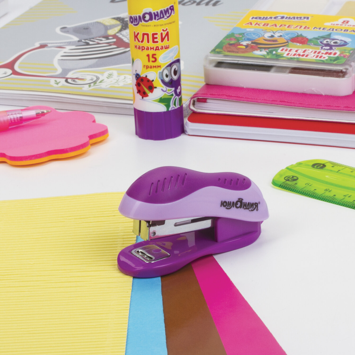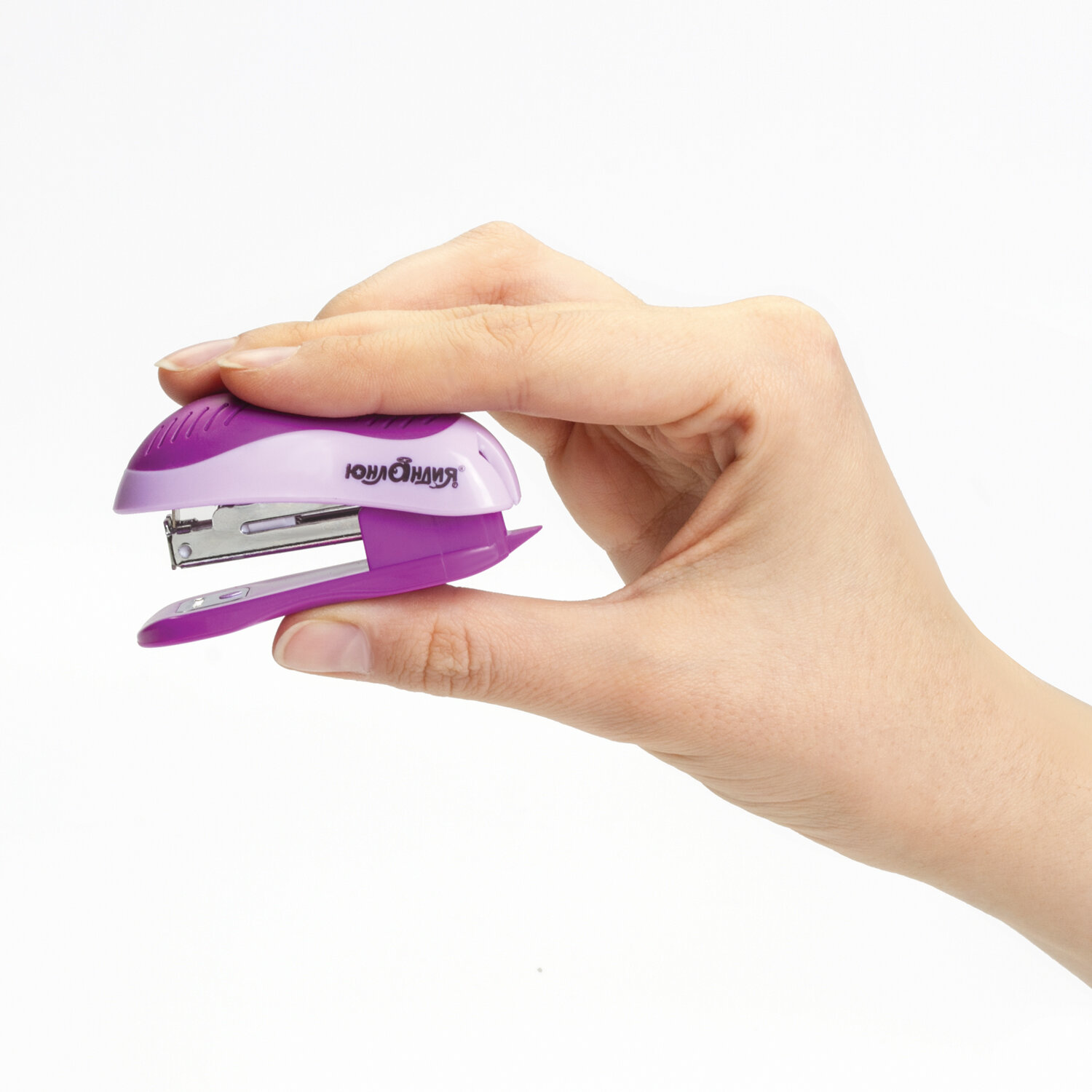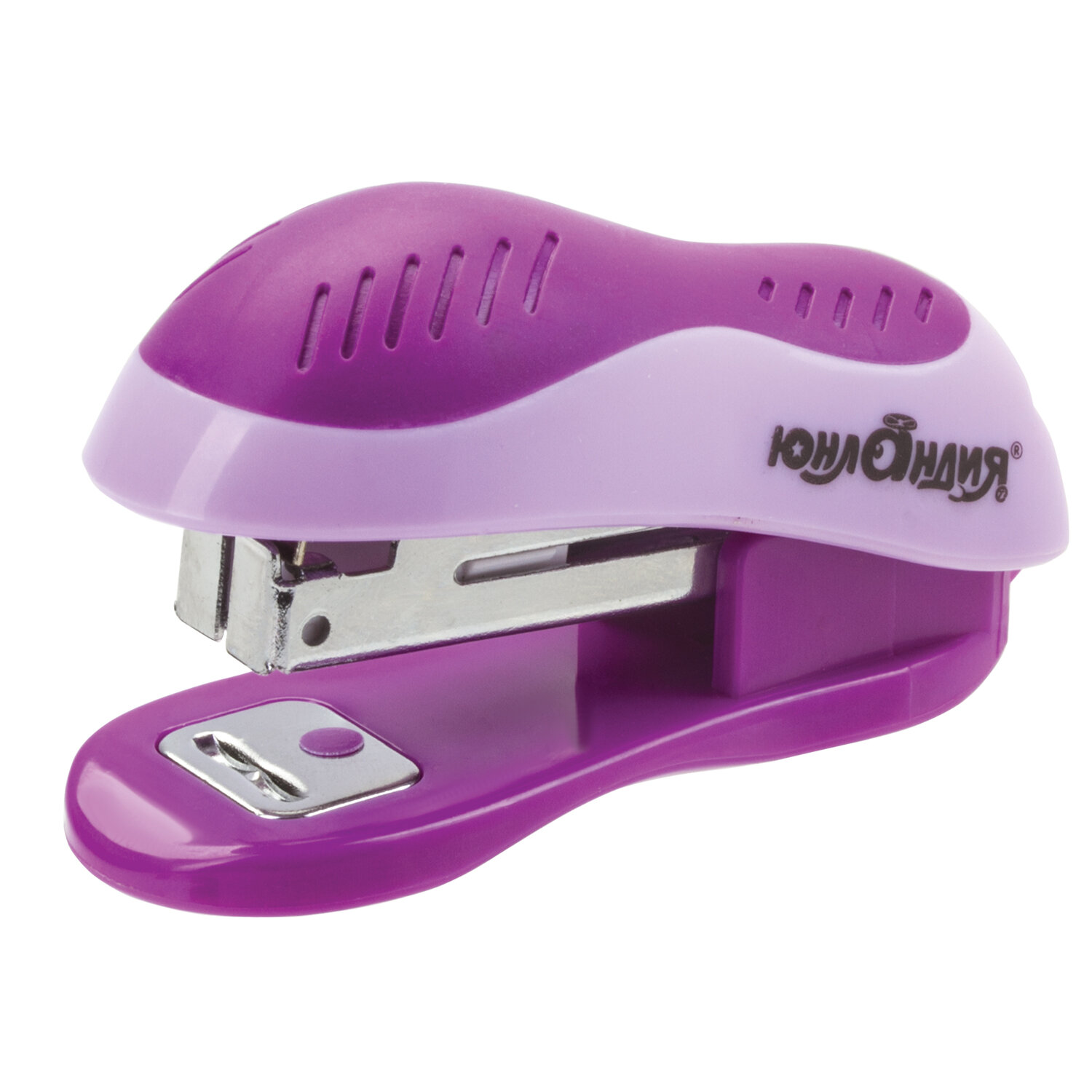 Степлер ЮНЛАНДИЯ высокого качества надолго станет незаменимым помощником при написании творческих работ. Степлер №10 МИНИ ЮНЛАНДИЯ, до 15 листов, с антистеплером, эргономичный, фиолетовый, 228492