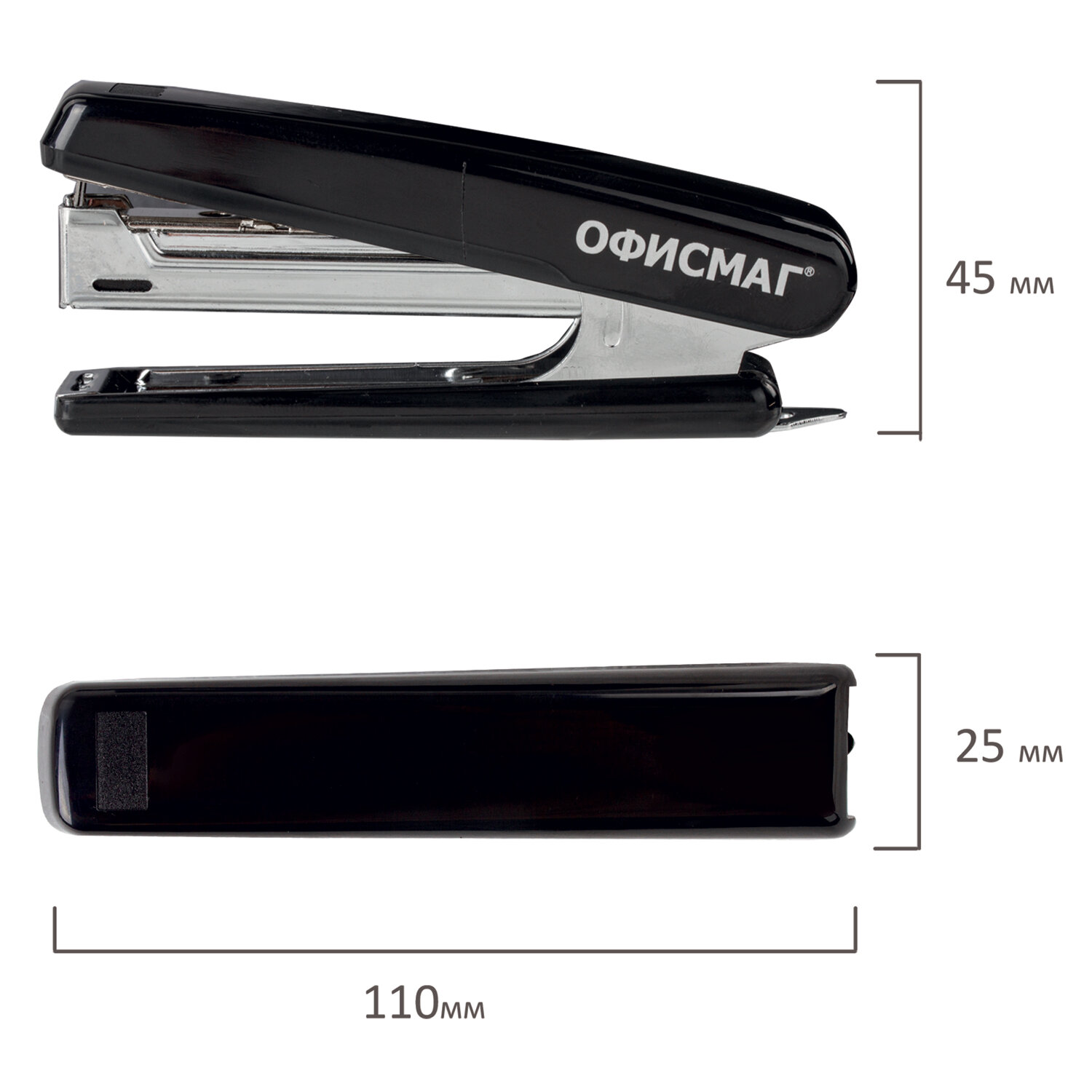 - Степлер №10 ОФИСМАГ, до 12 листов, с антистеплером, черный, 229690