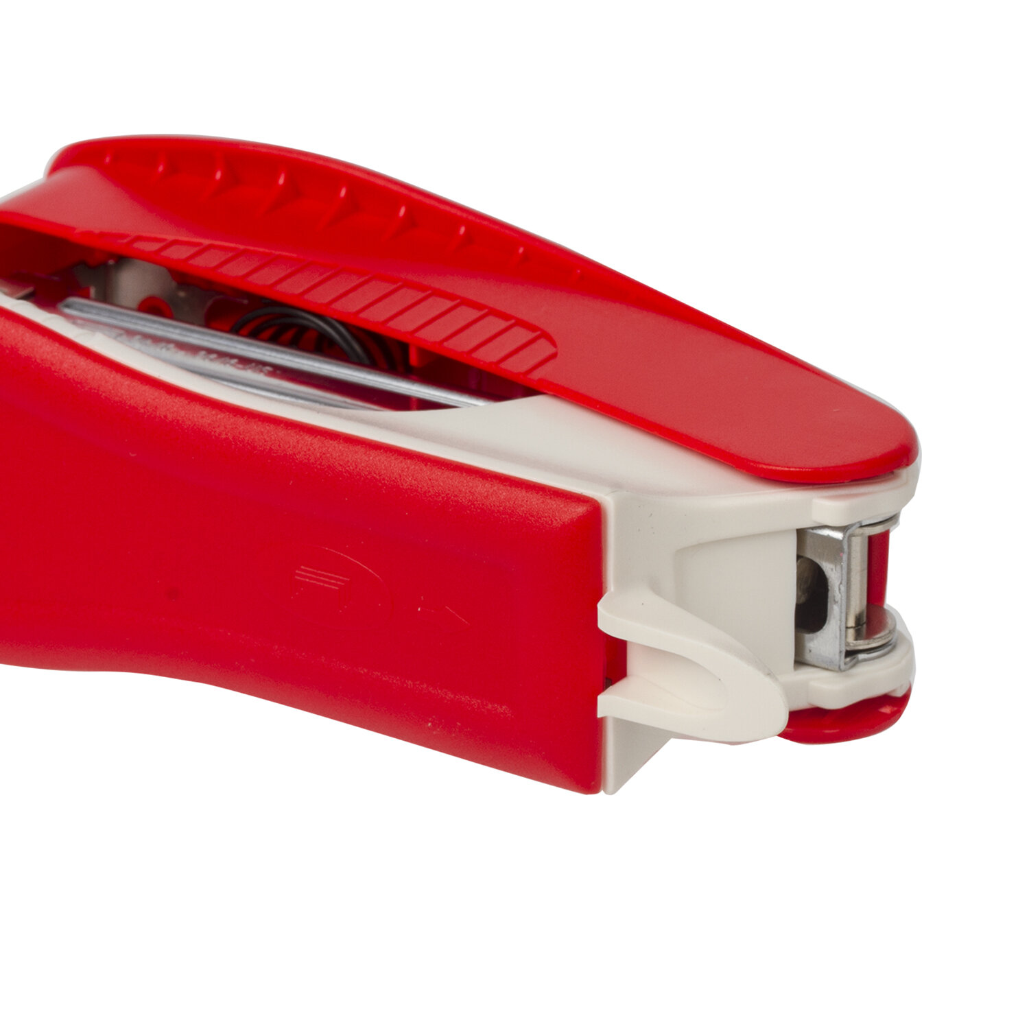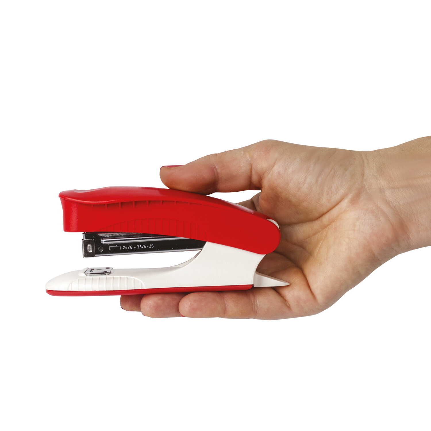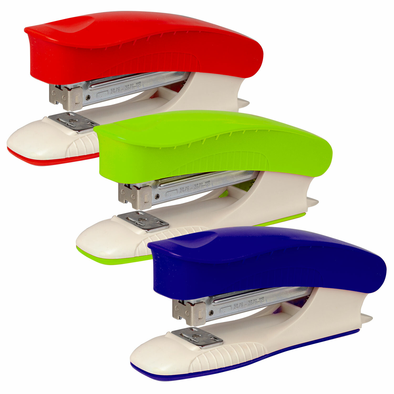 Способен скрепить до 30 листов. Стандартный размер скоб №24/6, 26/6. Глубина закладки бумаги - 45 мм. Виды сшивания: закрытый, прямой и открытый. Данная модель может выступать в качестве антистеплера, позволяющего разжать закрепленные скобы более качественно, не нанося повреждений ни материалу, ни кончикам пальцев. За счет компактных размеров не займет на рабочем столе много места. Имеет классический дизайн и выступает в синем, красном и зеленом цветах. Степлер №24/6, 26/6 BRAUBERG "METROPOLIS", до 30 листов, ассорти, 228753
