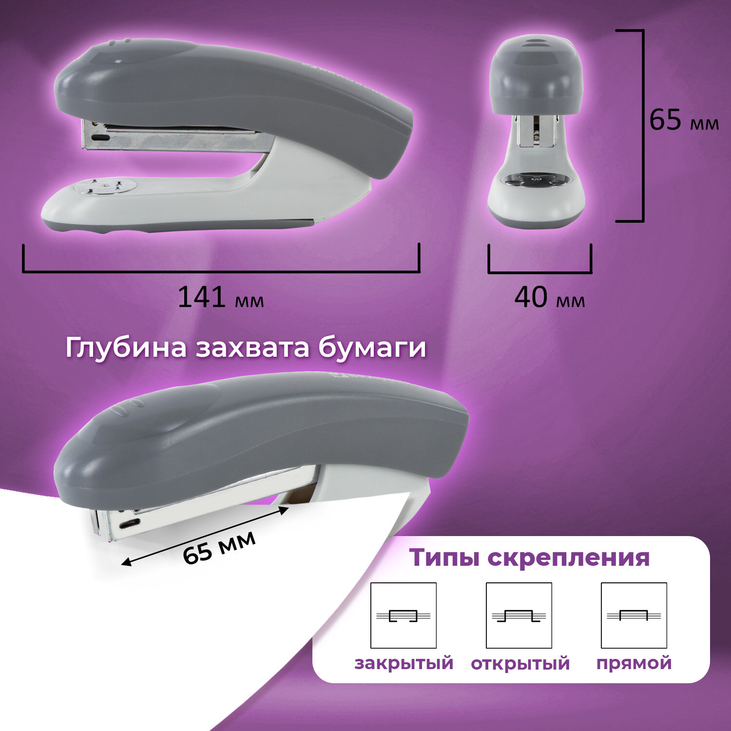 - Степлер №24/6, 26/6 BRAUBERG "Original", до 25 листов, серый, 222535