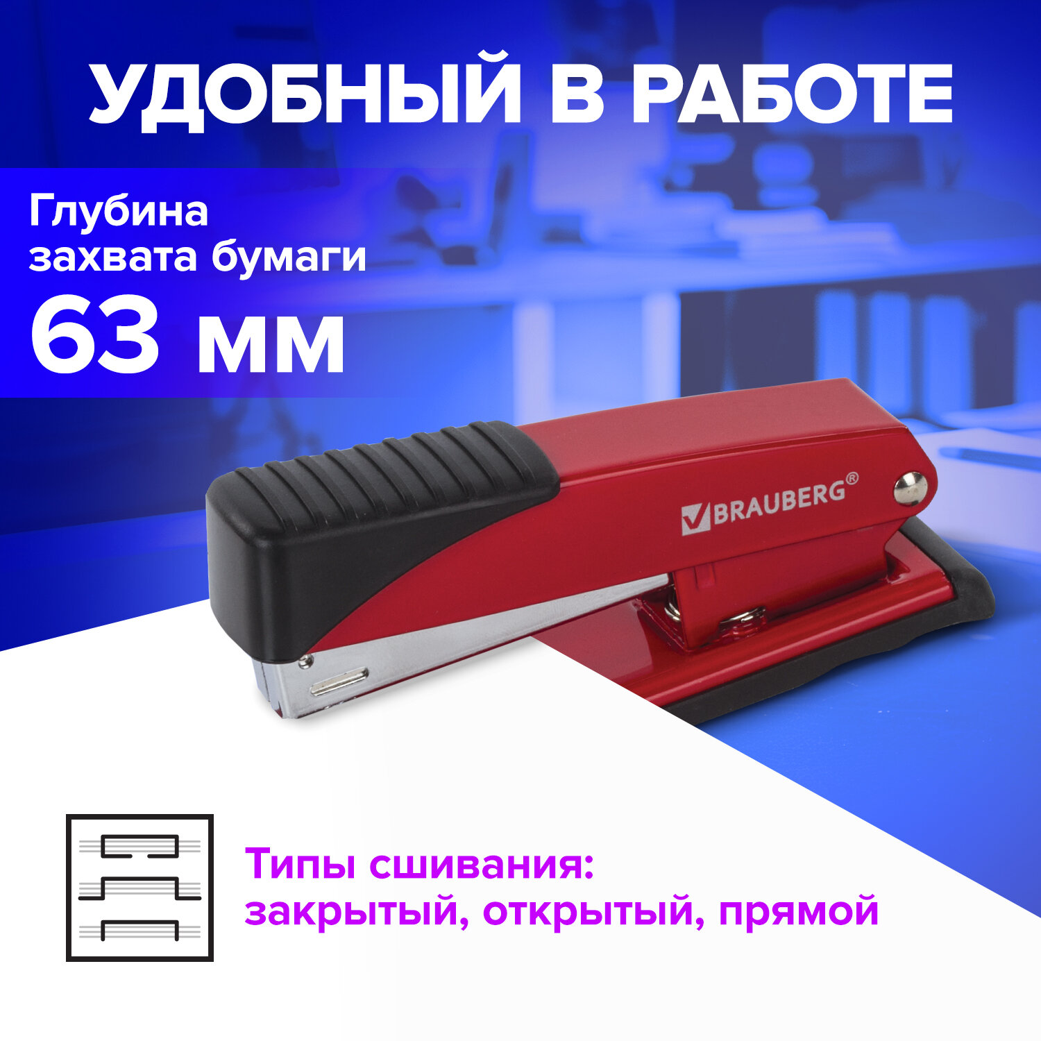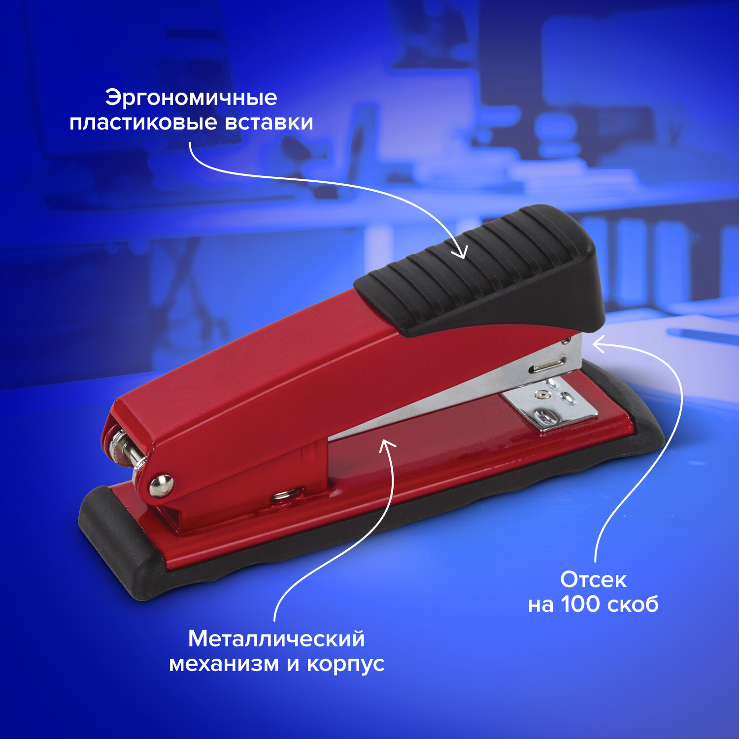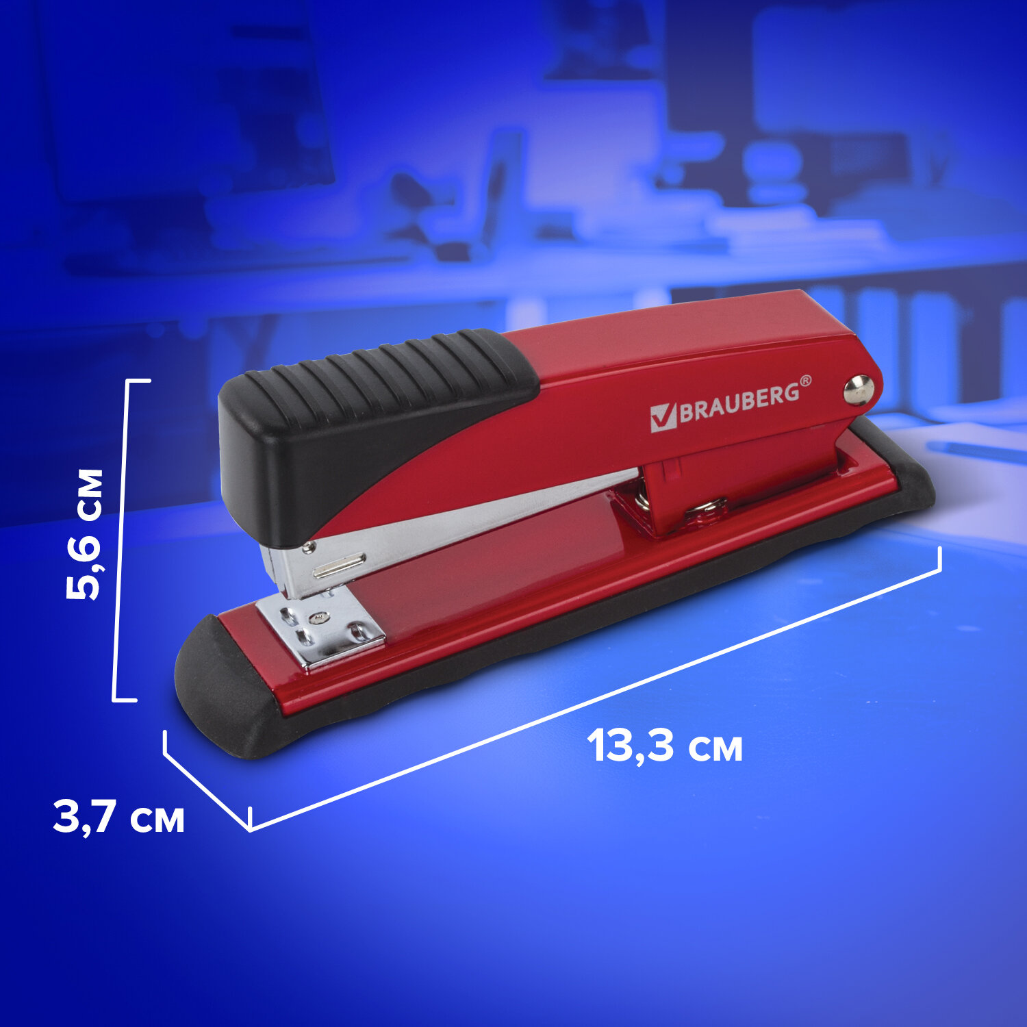 - Степлер №24/6, 26/6 металлический BRAUBERG "Office", до 30 листов, красный, 228613
