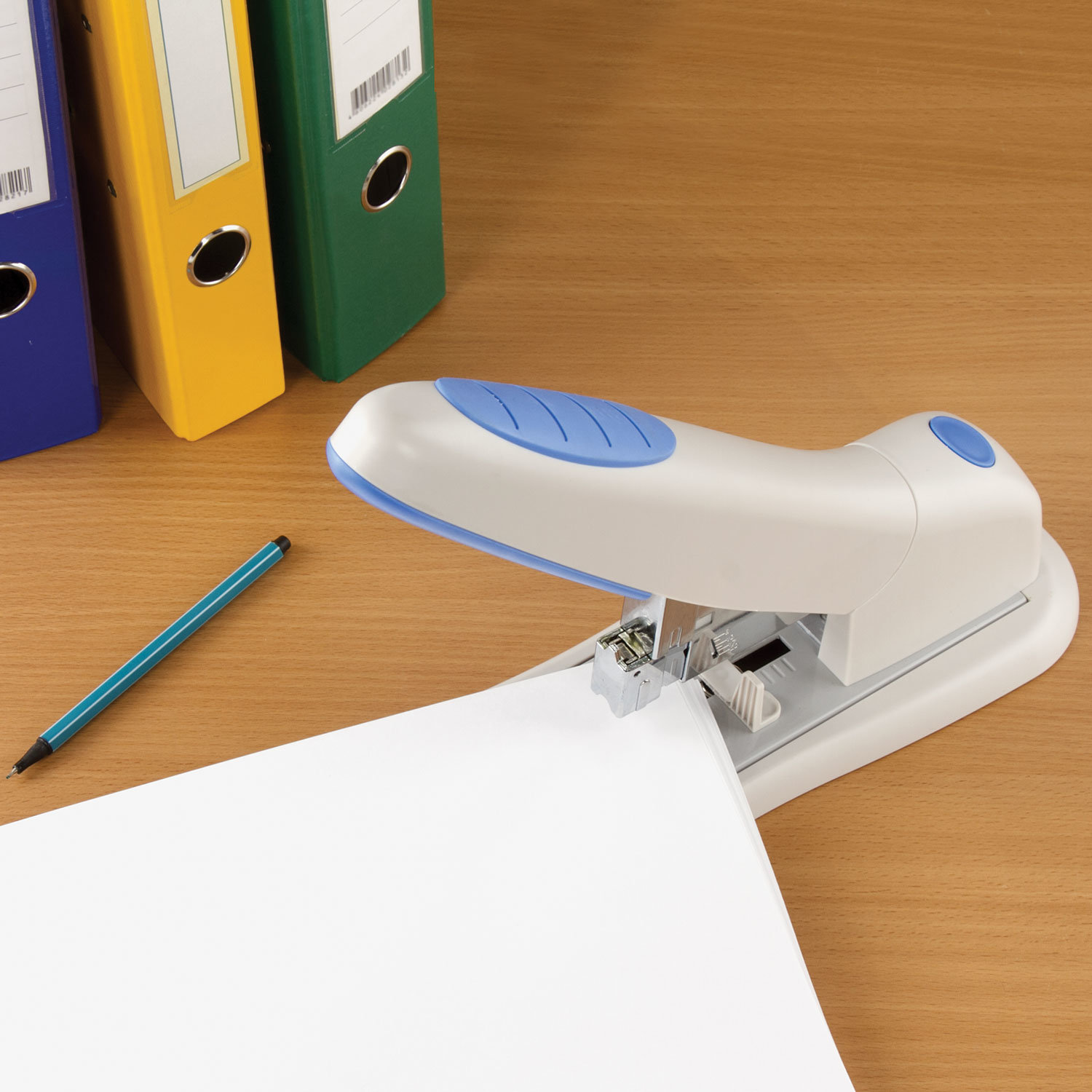 - Степлер МОЩНЫЙ №24/6-23/24 BRAUBERG "Heavy duty PRO", до 200 листов, эргономичный, серо-синий, 227662