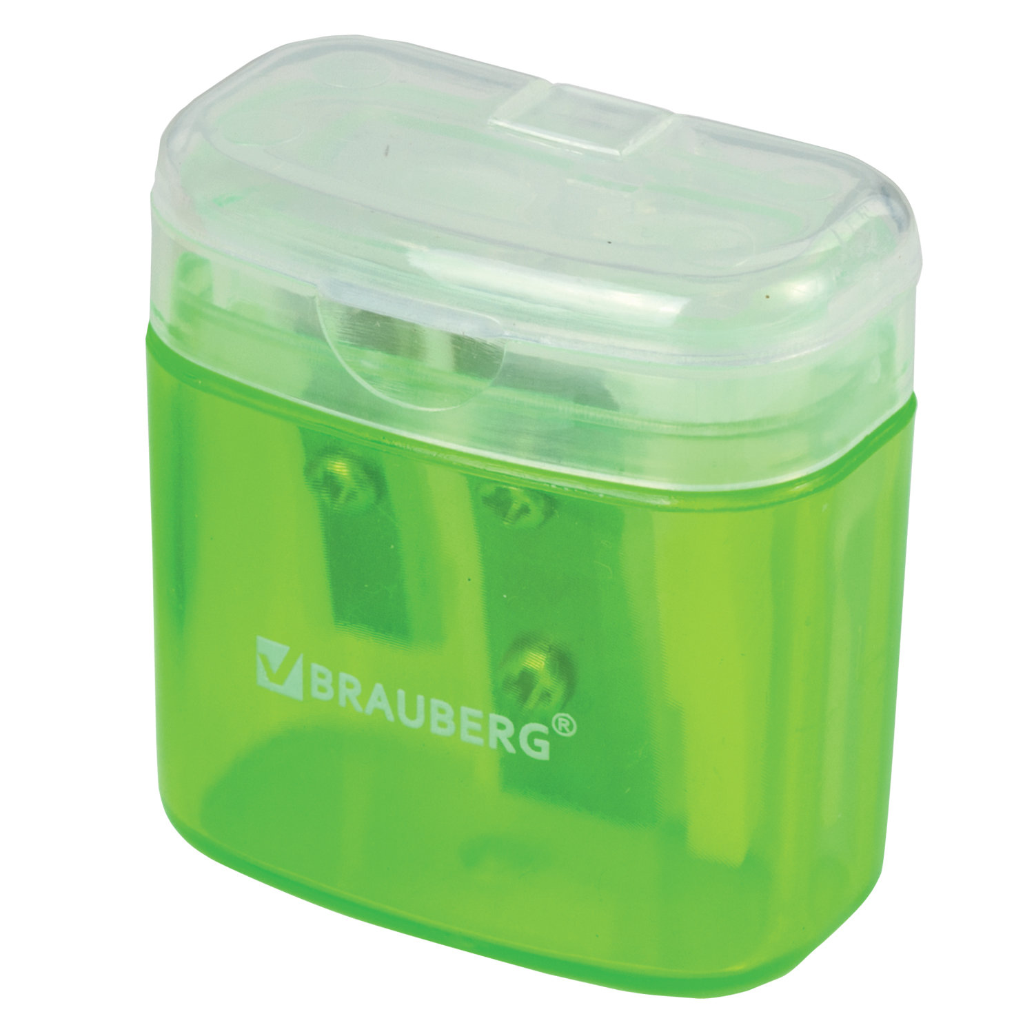 - Точилка BRAUBERG "Chief", 2 отверстия для чернографитных и цветных карандашей, с контейнером, с крышкой, ассорти, 226942