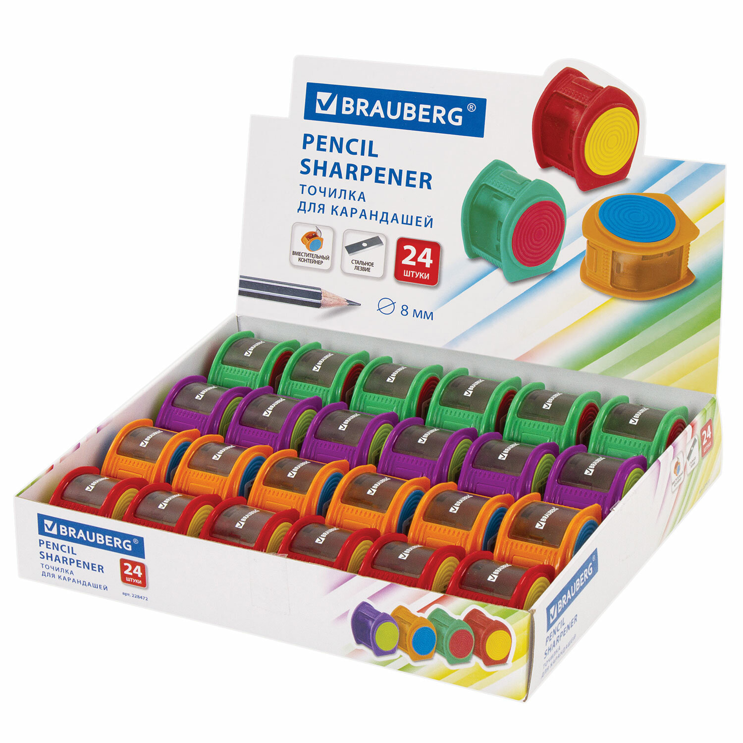 - Точилка BRAUBERG "Flash", с контейнером, пластиковая, корпус ассорти, 228472