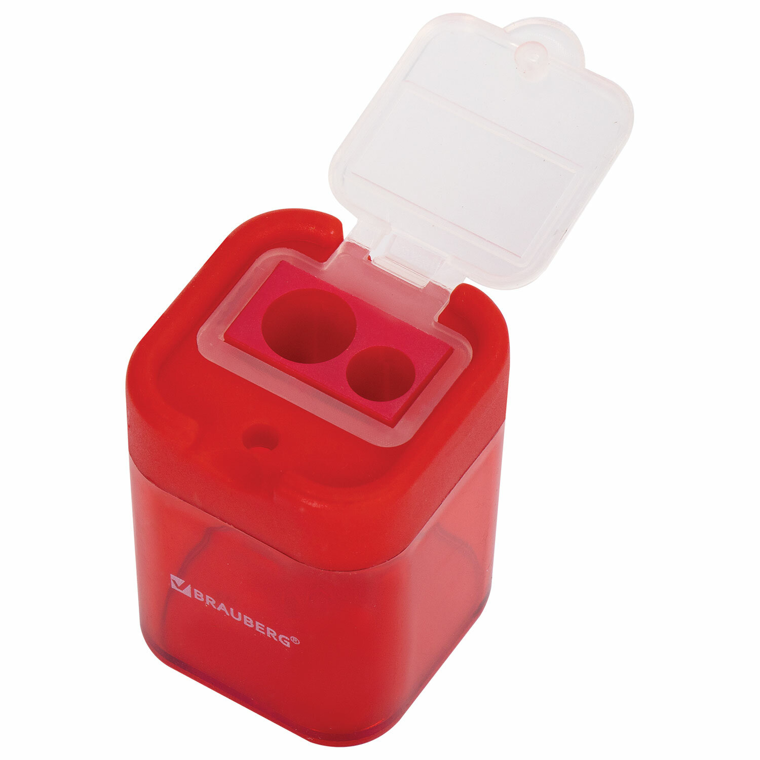 - Точилка BRAUBERG "Peak", 2 отверстия для чернографитных карандашей (в том числе утолщенных), с контейнером, пластиковая, ассорти, 226945